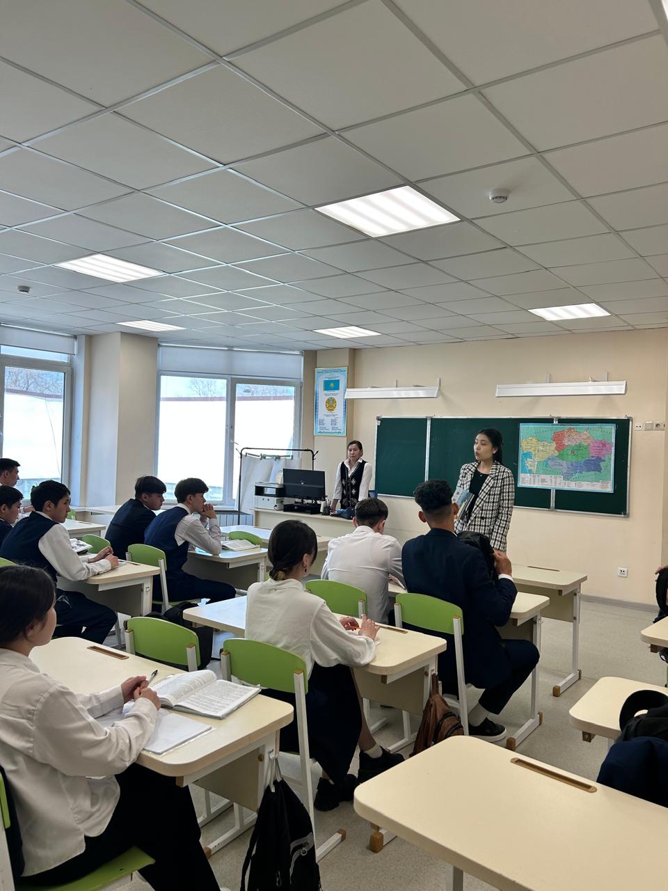 Колледжінің белсенді өкілдері әр оқушыға ақпараттық парақша таратты. Белсенді өкілдері оқушыларды ашық есік күніне шақырды.