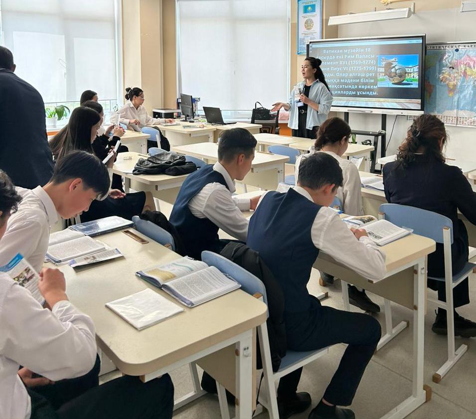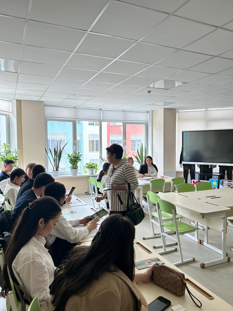 Университеттің және колледжінің белсенді өкілдері әр оқушыға ақпараттық парақша таратты. Белсенді өкілдері оқушыларды ашық есік күніне шақырды.