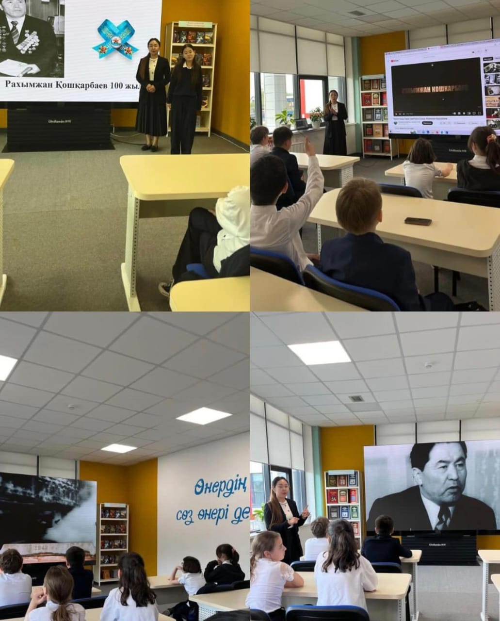 2024 жылдың 13 мамыр күні кітапханада Қазақ халқының қаһарман ұлы Рақымжан Қошқарбаевтың туғанына 100 жыл толуына орай «Есімі ел есінде» тақырыбында оқушыларға LED экраннан танымдық сабақтар көрсетіліп, Рақымжан Қошқарбаевтың Ұлы Отан соғысы кезіндег