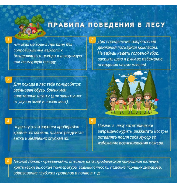 Важно соблюдать меры безопасности в лесу. Призываем родителей и детей ознакомиться с правилами поведения в лесу и строго их придерживаться.