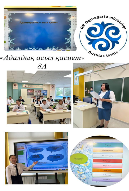09.09.2024 жыл күні № 205 жалпы білім беретін мектепте 8-9 сыныптарында «Адалдық сағаты» тақырыбында сынып сағаты өткізілді.