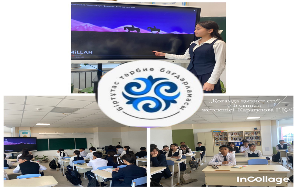 Сынып сағаты барысында оқушыларға LED экраннан видеороликтер мен презентация көрсетілді сонымен қатар сұрақ жауап арқылы өз ойларымен де бөлісті.