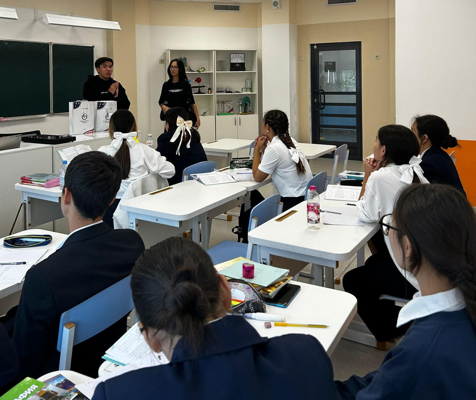 24 қыркүйек күні №205 ЖББ мектебімізге Қазақ Америка университетінің белсенді өкілдері келіп, мектептің болашақ 11 сынып түлектеріне университет жайлы ақпарат беріп, мамандықтар бойынша таныстыру жұмыстарын өткізді. Университеттің белсенді өкілдері әр оқушыға ақпараттық парақша таратты. Университет өкілдері оқушыларды ашық есік күніне шақырды.