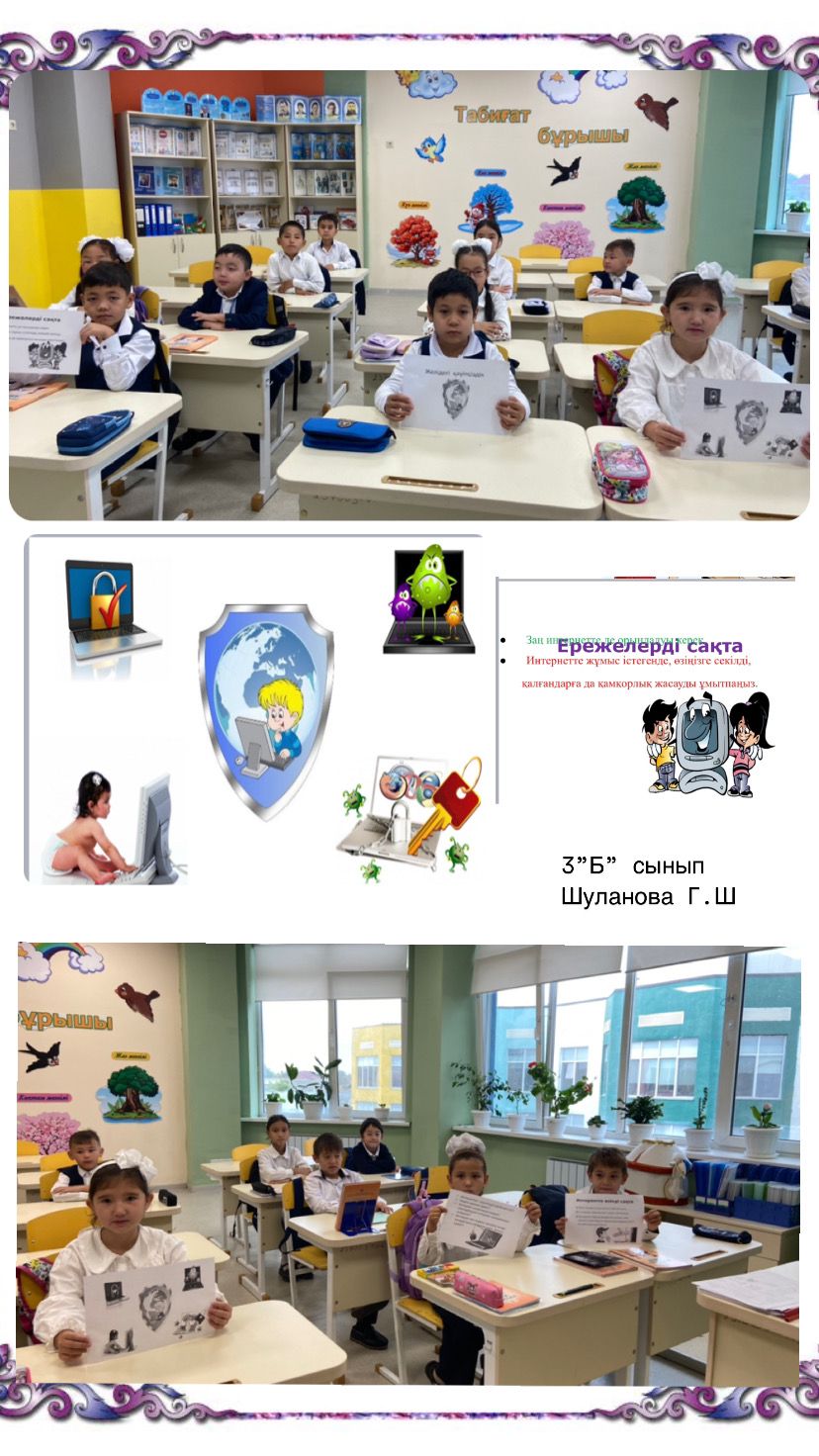 14 қазан 2024 0 1 2 3 4 5 “Цифрлық әлемде қауіпсіз қадам” 14.10.2024 күні 3”А”, 3”Ә”, 3”Б”, 3”В”, 3”Ғ”, 3”З” сыныптарында “Цифрлық әлемде қауіпсіз қадам” атты сынып сағатын өтті. Мақсаты: Оқушыларға цифрлық әлем туралы ақпарат беру;Цифрлық әлемді қауіпсіз қолдануға үйрету.