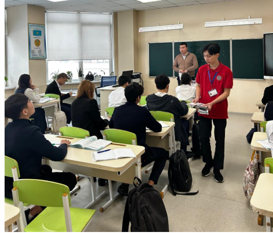Колледжінің белсенді өкілдері әр оқушыға ақпараттық парақша таратты. Белсенді өкілдері оқушыларды ашық есік күніне шақырды.