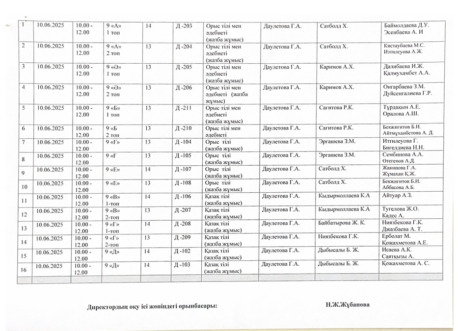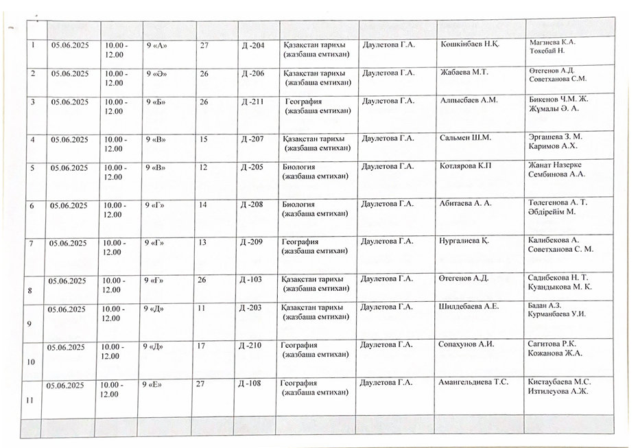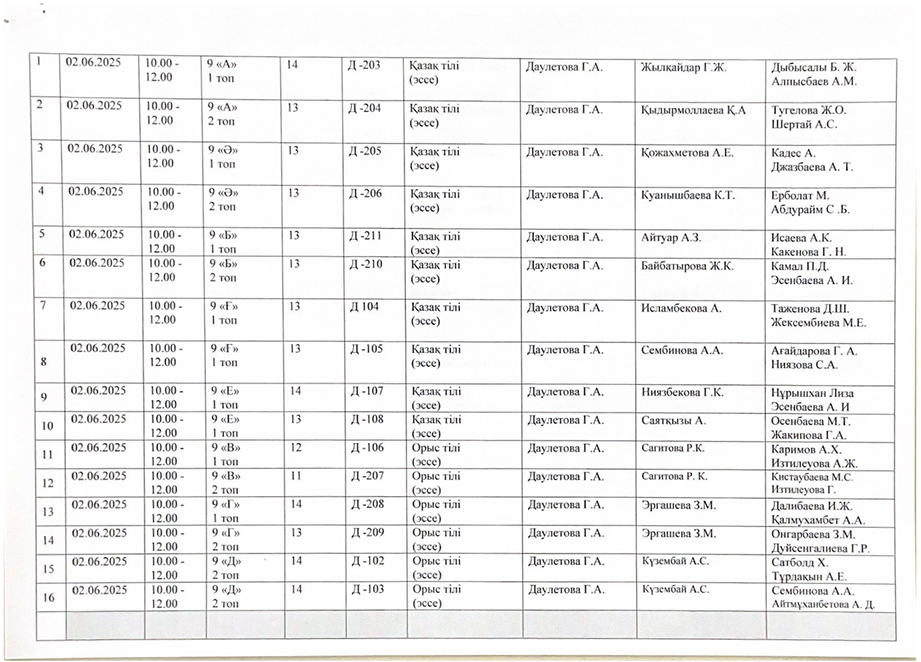 » » 2024-2025 оқу жылындағы негізгі орта білім беру курсы бойынша аттестаттау кестесі