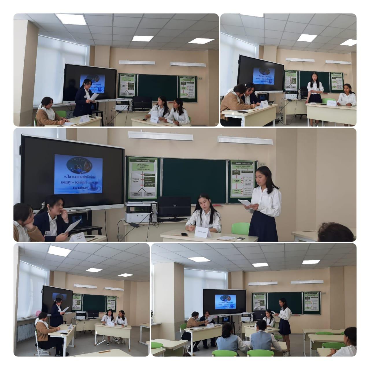 Қазіргі таңда латын әліпбиіне көшу өзекті мәселе болып саналады. Ғалымдар,лингвистер, жалпы қауым арасында бұл мәселеге қатысты екі жақты пікір айтылып жүр. Осы орайда, 20-қазанда мектебіміздің «ZAMAN» дебат клубы «Латын әліпбиі-заман талабы» тақырыбында АПФ форматында ойын көрсетті. Ойын барысында үкімет болған «Жебе» фракциясы спикерлері де, оппозиция болған «Адал ұрпақ» фракциясының спикерлері де өз позицияларын жоғарғы деңгейде қорғап шықты. Осы тұста, бірінші болып, Жебе фракциясынан лидер Мухаметжан Алтын «Не үшін латын әліпбиіне көшуіміз керек? Саяси маңыздылығы жағынан айтқанда, кириллицамен сіңіп кірген отарлық санадан арылу үшін де оның саяси маңызы зор. Екіншіден, латын жазуы қолданысқа оңай, игеруге ыңғайлы. Оған қоса жаратылыс ғылымдары жағында да қолданыста дәлділігі мен ептілігін дүниежүзінің өмір тәжірибесі дәлелдеді. Қазақ мәдениеті дүниежүзінің әдебиетімен, мәдениетімен тезірек қауышу үшін латын әрпіне 10-15 жылдың ішінде біртіндеп көшуге болады. Әрі бұл әлем қазақтары латын әрпі арқылы ала-құлалықтан да арылар еді. Ортақ жазуымыз, ортақ ұлттық мәдениетімізді қалыптастырары анық. Латынға көшу жазу-сызуды өзгерту ғана емес. Бұл тілге реформа жасалады. Оның нәтижесі – білім - ғылым, әлеумет, саясат, яғни, мемлекеттің бар саласын қамтитын күрделі шаруа. Мысалы көрші жатқан Өзбекстан, Түркіменстан елдері КСРО ыдыраған соң XX ғасырдың аяғында сол латын әліпбиіне көшіп үлгерген. Олар қазір өзінің басымдығын сезініп отыр. Дамығандығын көрсетіп отыр. Біз де сол дамыған 30 елдің қатарына кіруді мақсат қойып отырмыз. Сол мақсатымызға жетуге септігін тигізер еді. Септігін тигізіп қана қоймайды. Өзге ұлт өкілдерінің мемлекеттік тілді үйренуде қазақтың ережеге бағынбайтын дыбыстық үндес әліпбилерін жаттауда жеңілдей түседі» деп ойын қорытындылады.