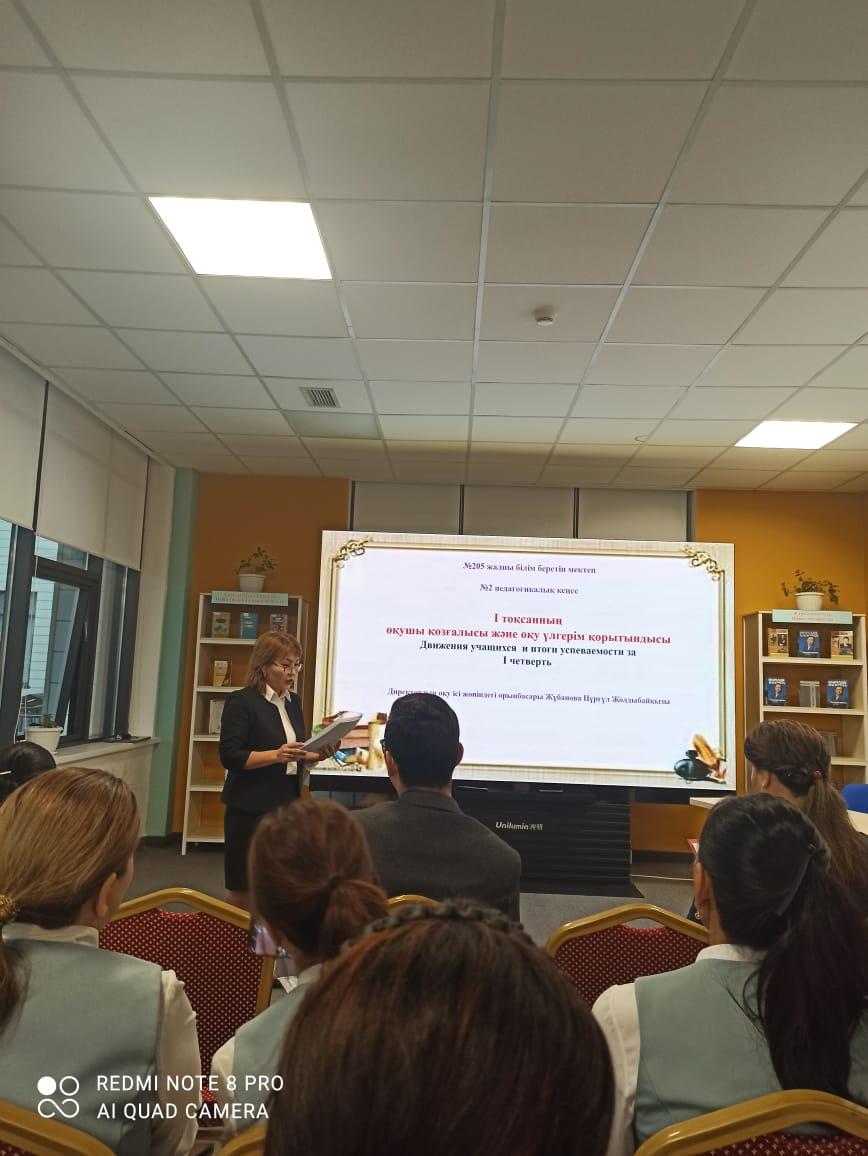 03.11.2022 ж. №205 жалпы білім беретін мектепте Білім алушылардың біліміндегі олқылықтарын толықтыру мақсатында 2022-2023 оқу жылында І-тоқсан қорытыңдысы және ІІ-тоқсанға дайындық бойынша педагогикалық кеңес өтті.