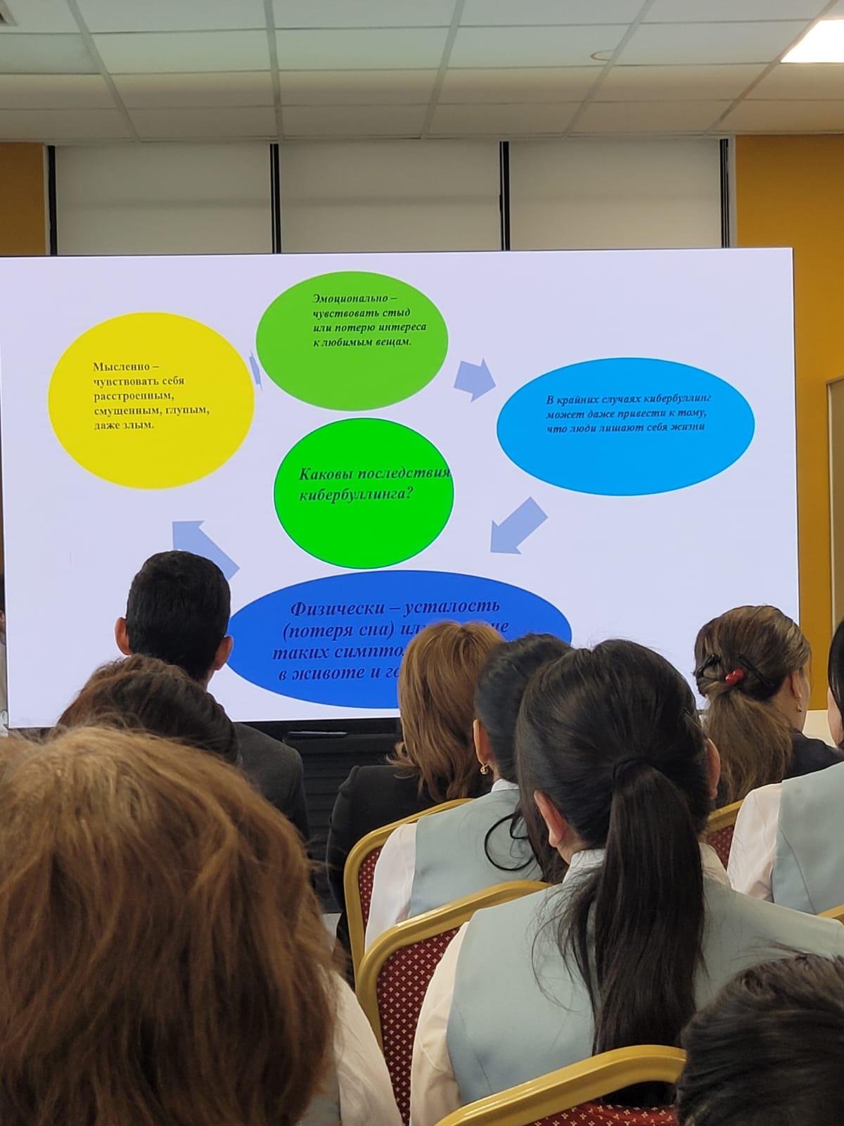 Бесінші мәселе бойынша мектеп психологы А.Аукенова сөз алып кәзіргі қоғамда кеңінен тарап келе жатқан «Буллинг» сөзінің мағынасын ашып, жасөспірімдер мен адамдар арасындағы қорлау, мазақтау, намысқа тию жағдайларын алдын алу және осы мәселенің алдын алу бойынша тоқталып өтті. Сынып ұжымын сыйластыққа, бір-біріне қолдау көрсете білуге тәрбиелеуге қажет екенін айтты.
