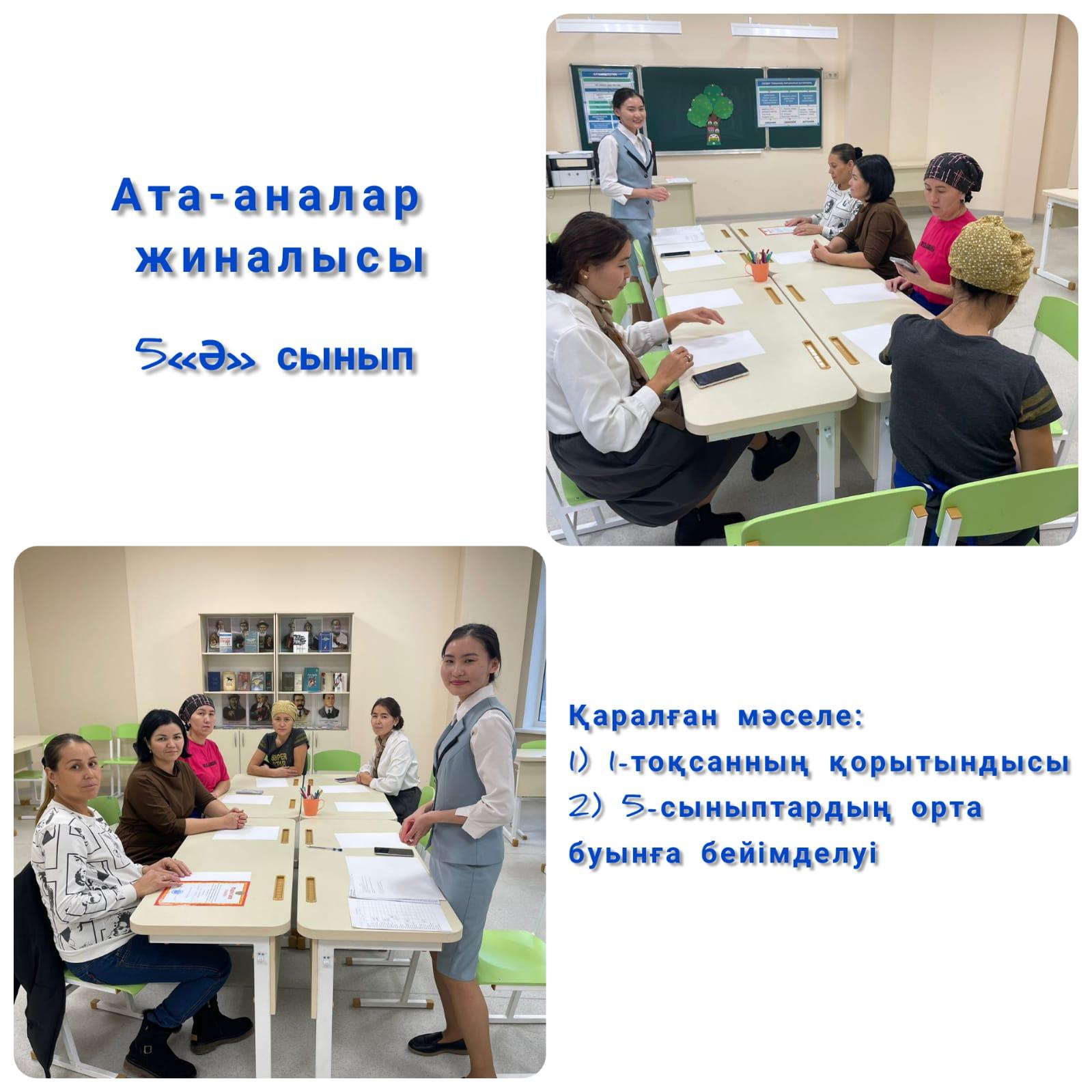 Жиналыс барысында 2-тоқсан қорытындысы бойынша баланың оқу жетістіктерін бақылау үшін күнделікті электронды журналдағы қалыптастырушы бағалар арқылы біліп, Онлайн мектептен күнделікті білім деңгейін бақылап отыруға болатындығын. Сондай-ақ сынып жетекшімен үнемі байланыста болу керектігі туралы айтылды.