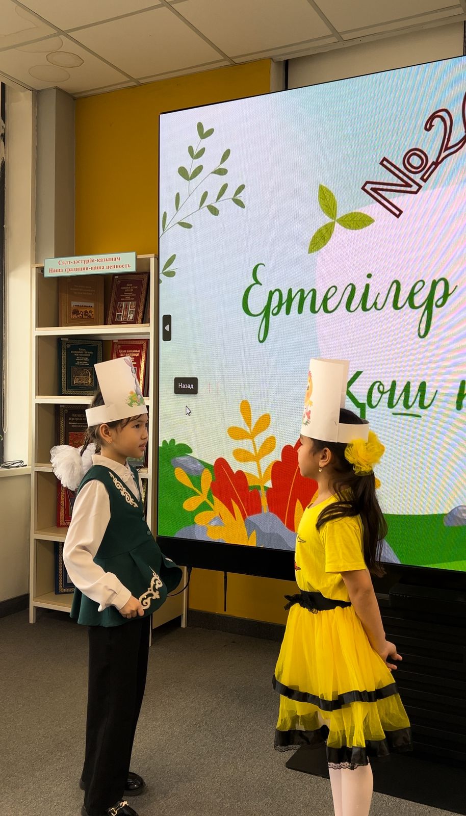 2026 жылдың 20 ақпан күні мектеп кітапханасында «Балалар кітапханасы» жобасы бойынша бастауыш сынып мұғалімі Сахи Гүлдана Жалғасбекқызы 1-4 сынып оқушыларының қатысуымен «Ертегілер әлемі» тақырыбында ертегі оқу сағатын ұйымдастырды.