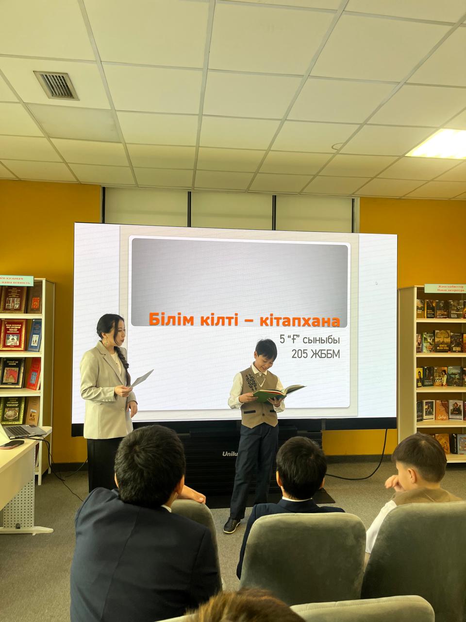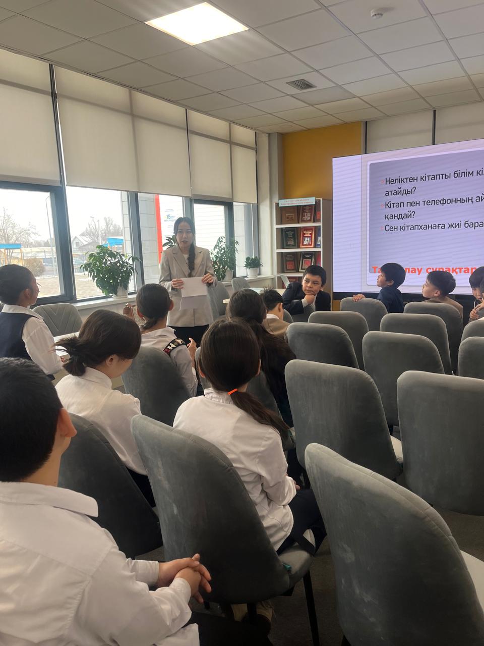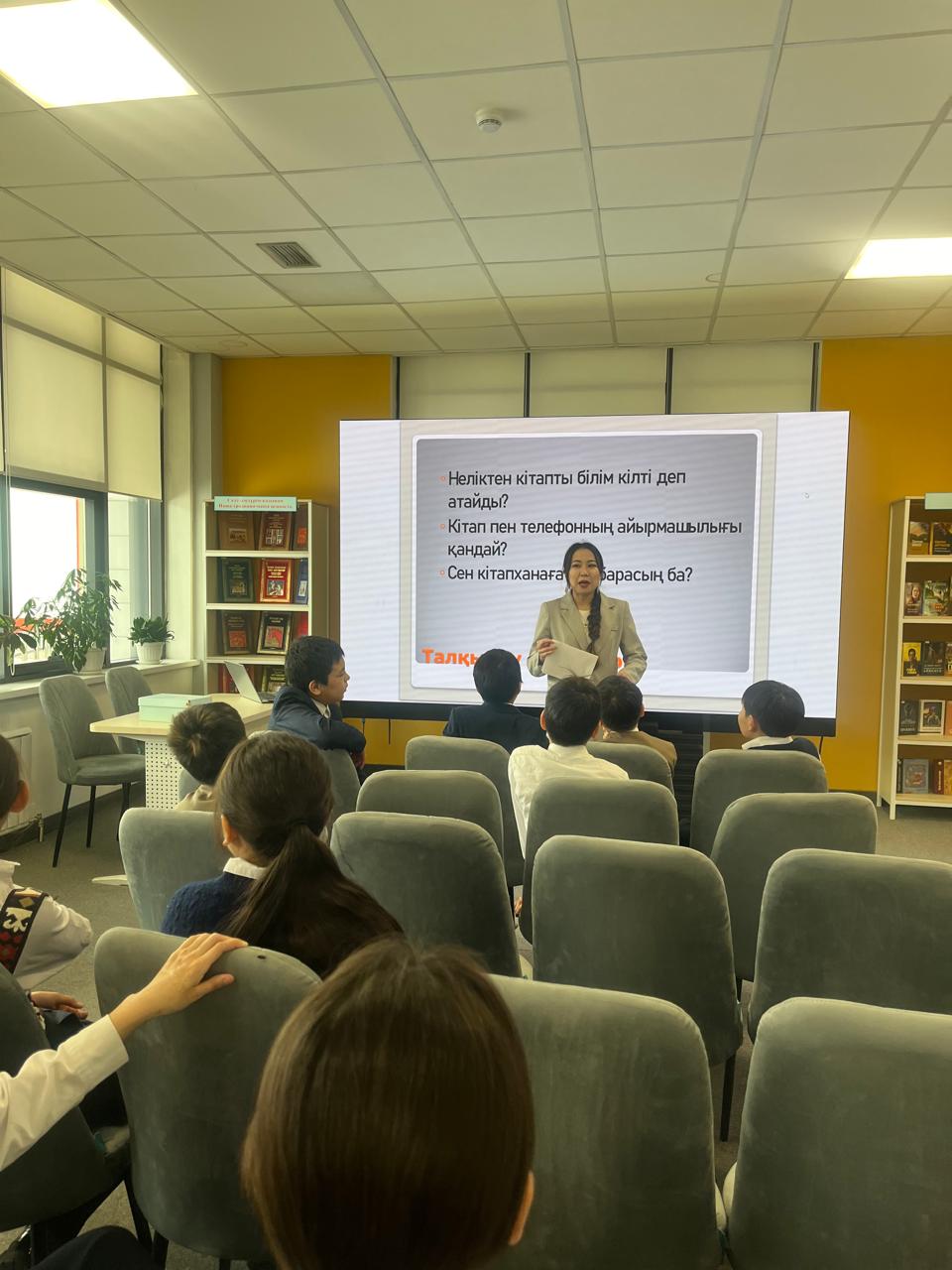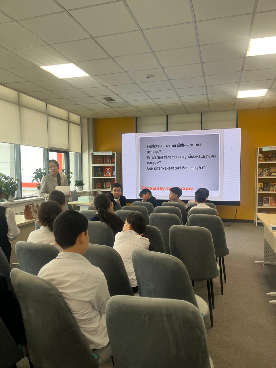 2026 жылдың 4 наурыз күні 5 «Ғ» сынып жетекшісі Айтмұханбетова Айгерим «Балалар кітапханасы» жобасы бойынша «Білім кілті - кітапхана» тақырыбында 5 сынып оқушыларымен дөңгелек үстел ұйымдастырды.