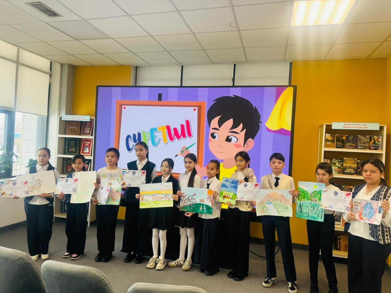 2026 жылдың 5 наурыз күні кітапхана 5 «Ә» сынып жетекшісі Ерболат Мөлдір, 1 «Ә» сынып жетекшісі Сейдуалы Маржанның ұйымдастыруымен «Балалар кітапханасы» жобасы аясында «Суретші оқырман» тақырыбында 5 сынып оқушылар арасында сурет салудан сайыс өткізілді.