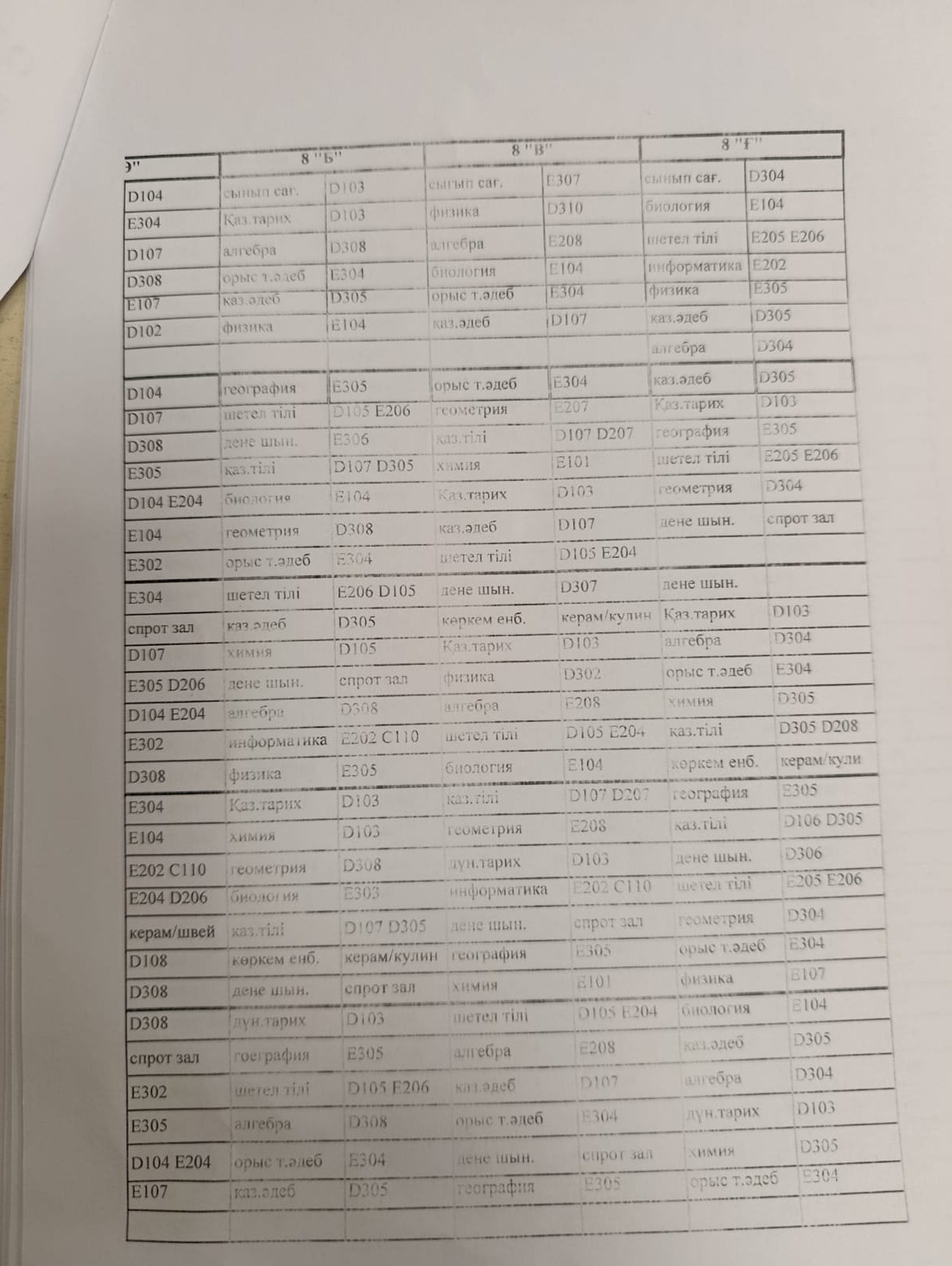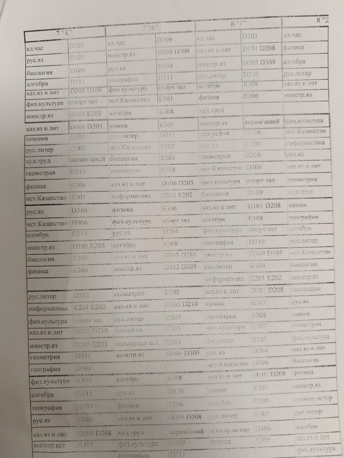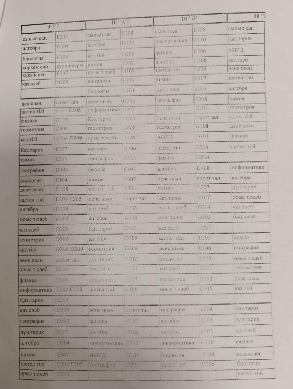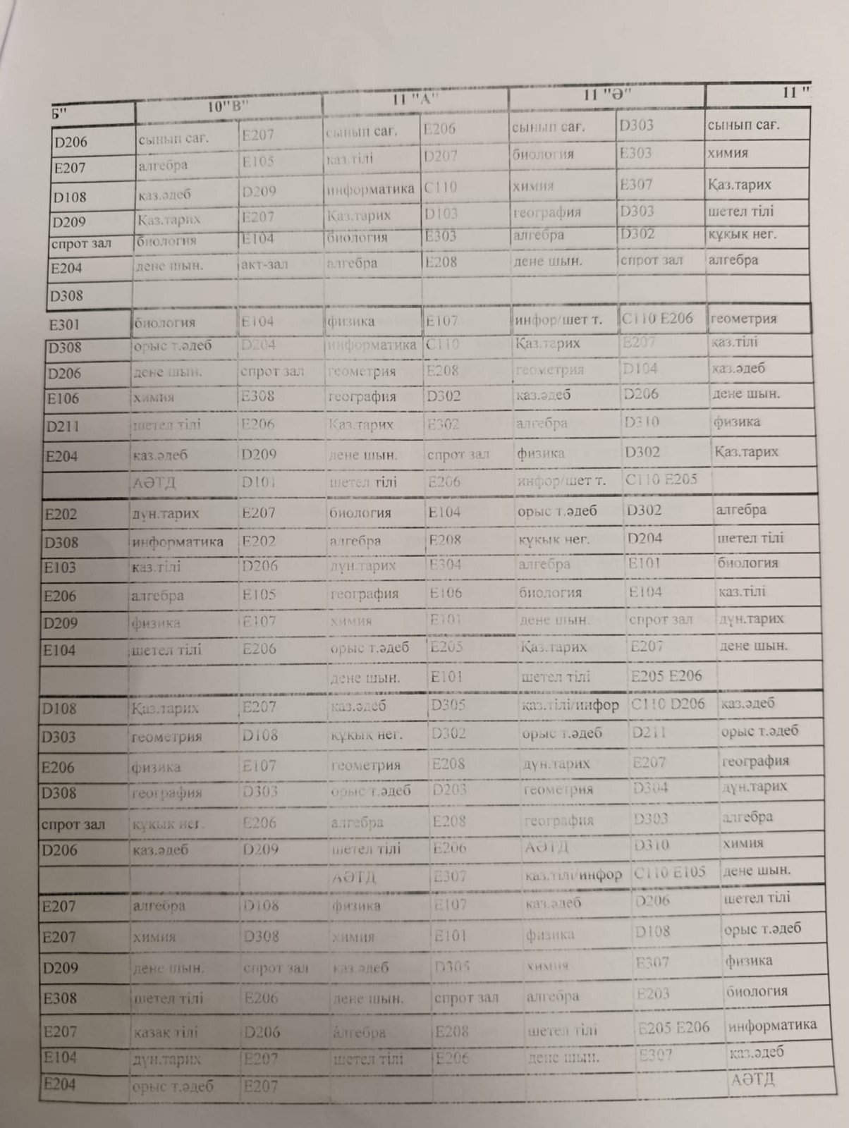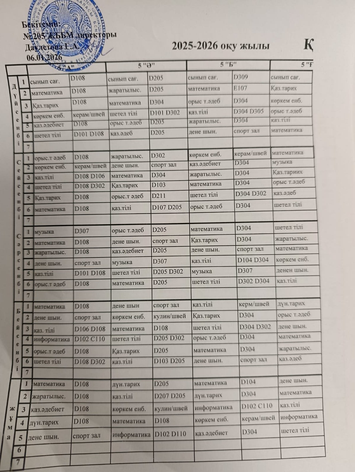 » » №205 ЖББ мектебінің 2025-2026 оқу жылының сабақ кестесі / расписание 2-жартыжылдық / полугодие