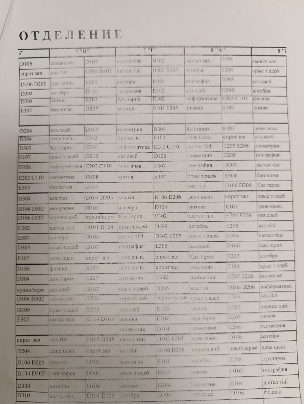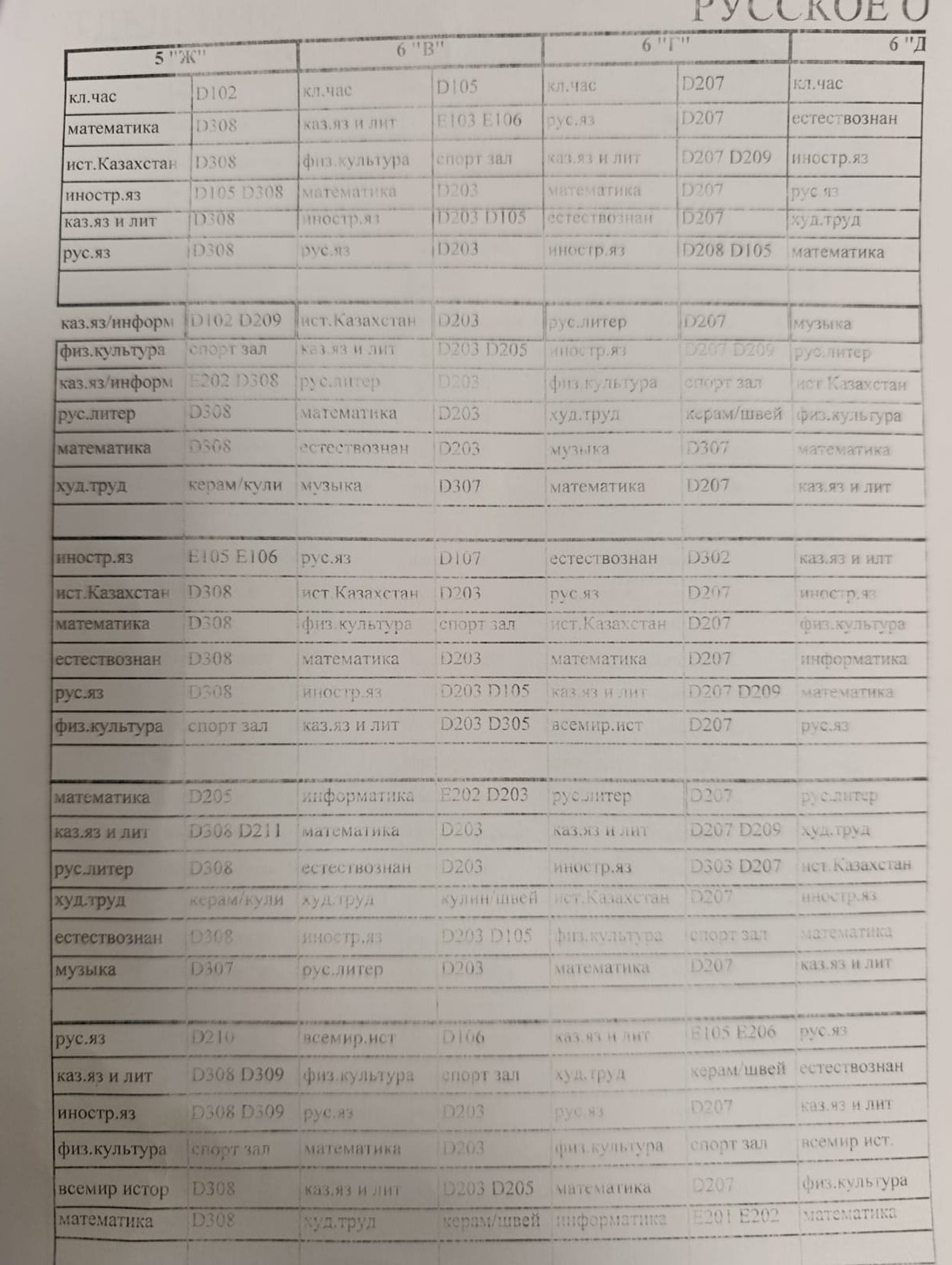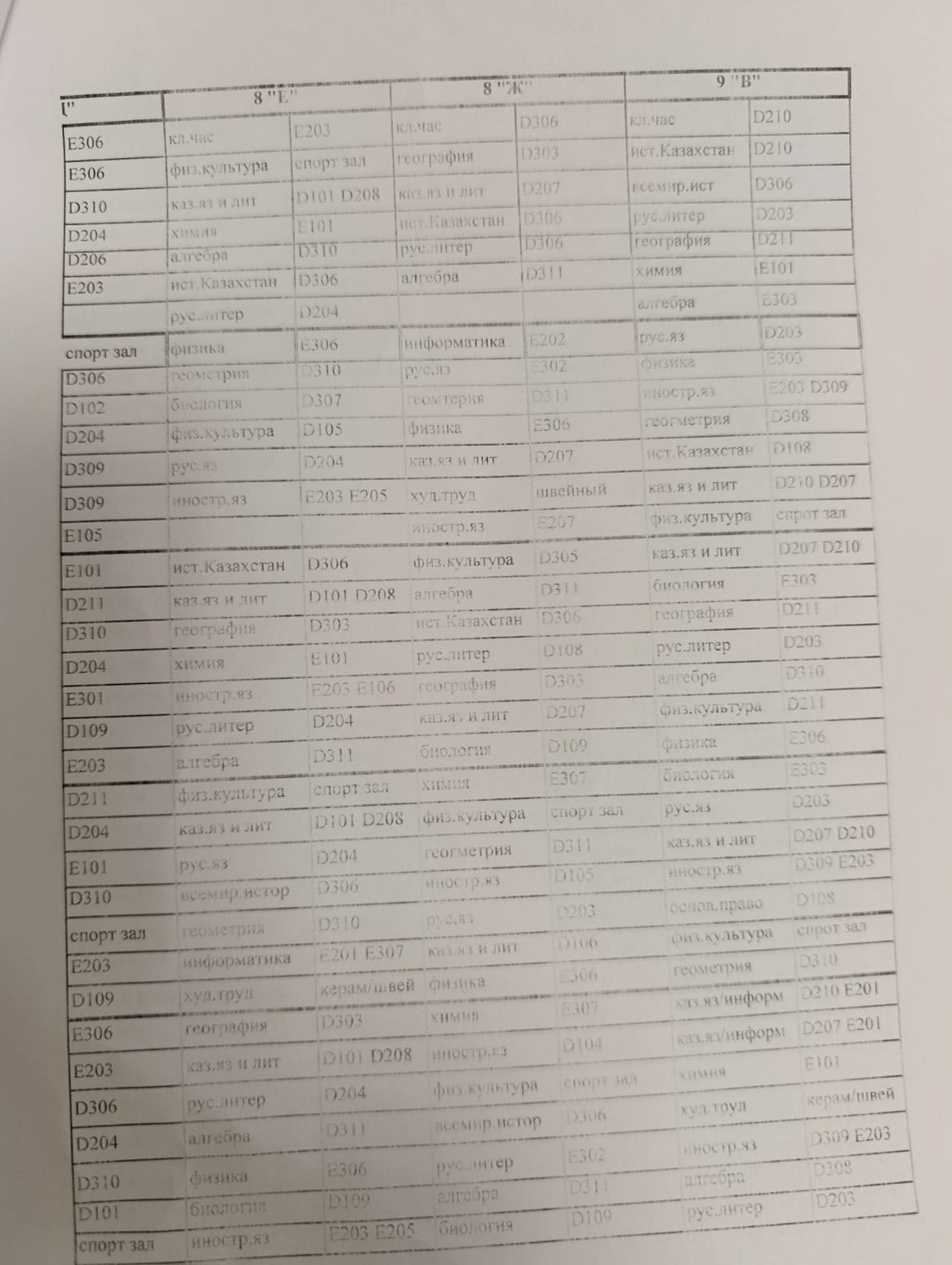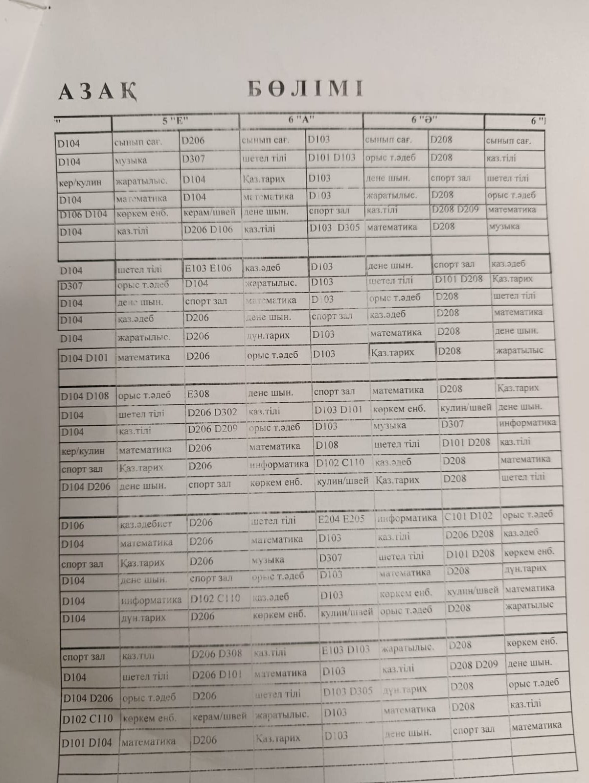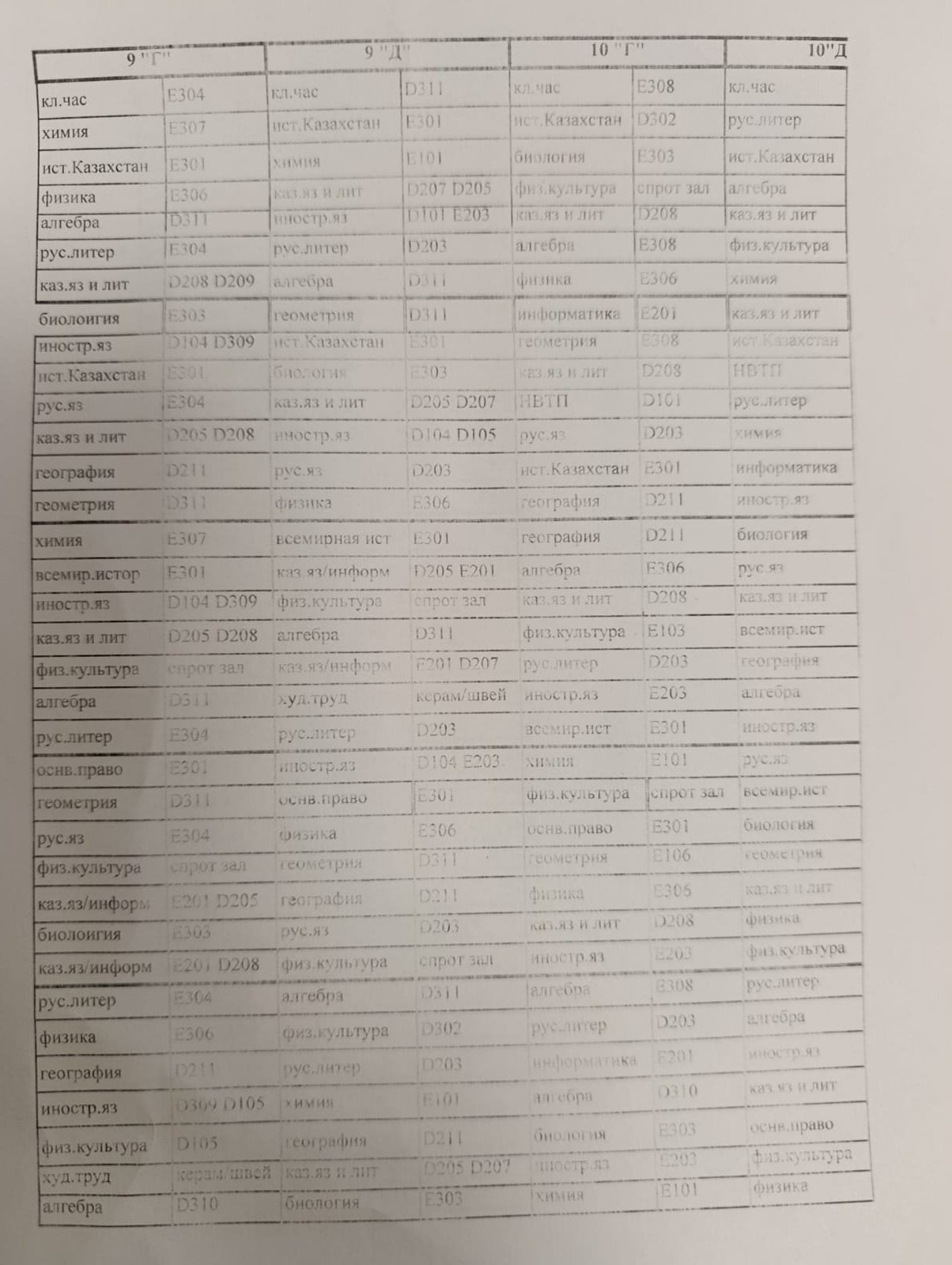 » » №205 ЖББ мектебінің 2025-2026 оқу жылының сабақ кестесі / расписание 2-жартыжылдық / полугодие