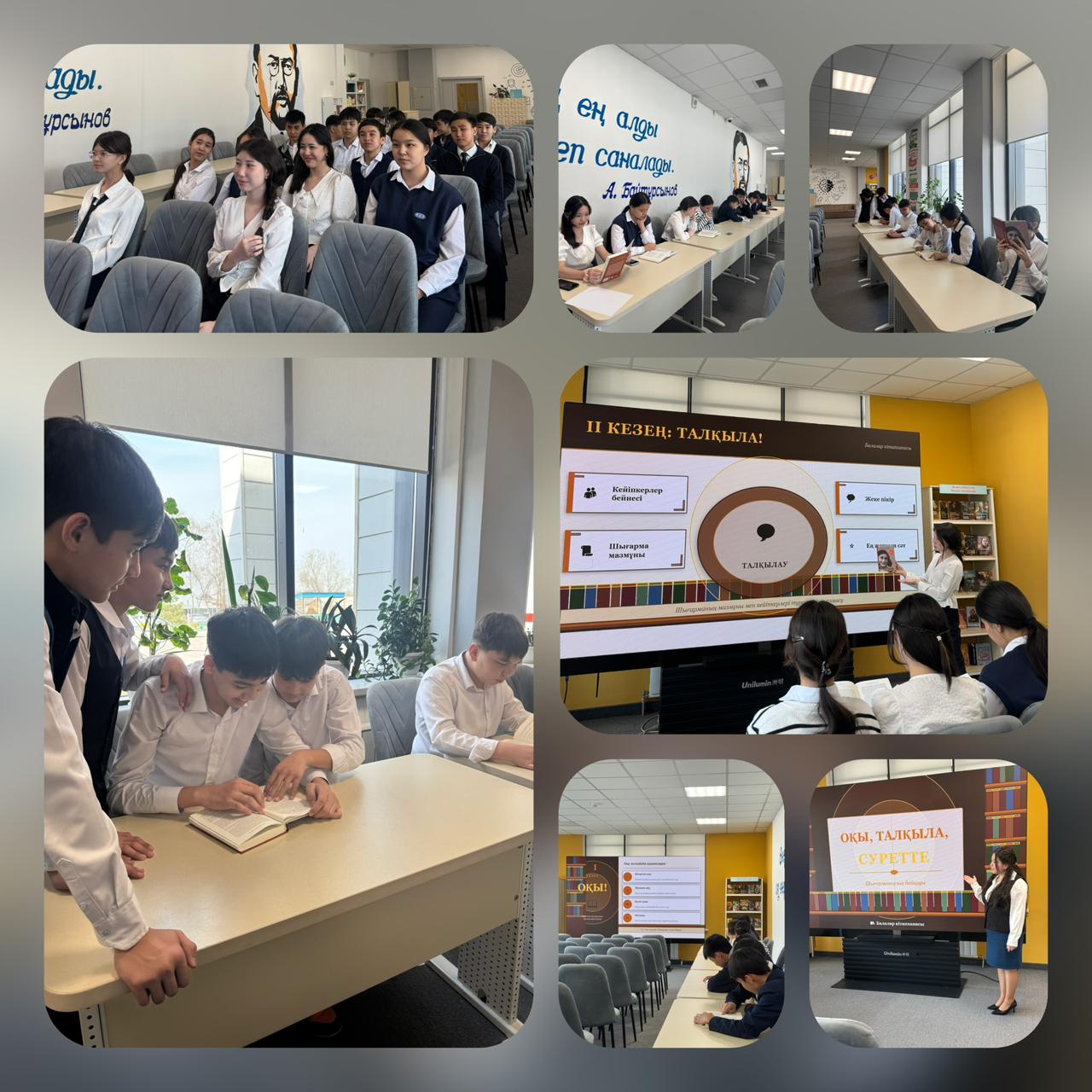 2026 жылдың 30 наурыз күні кітапханада «Балалар кітапханасы» жобасы аясында 8 «В» сынып жетекшісі Тұрдақын Ақнұрдың ұйымдастыруымен «Оқы, талқыла, суретте» тақырыбында оқушылармен танымдық сабақ өткізді.