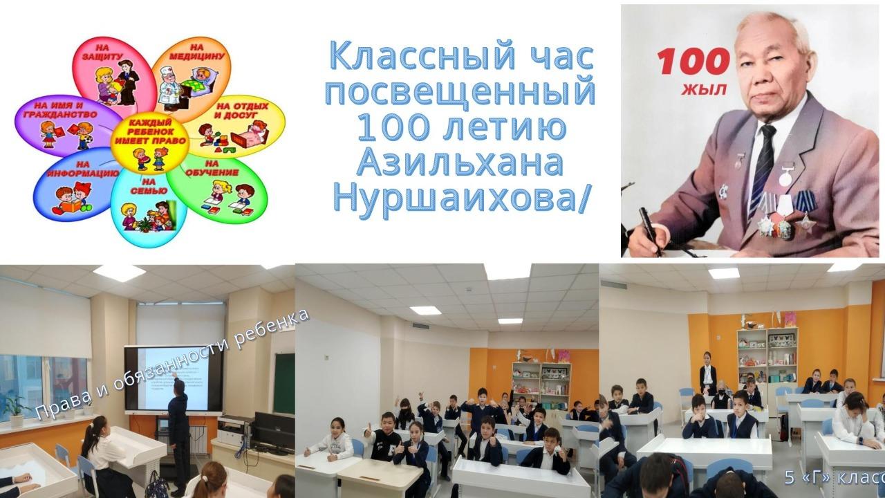 Әзілхан Нұршайықовтың туғанына 100 - жыл тәрбие сағаты