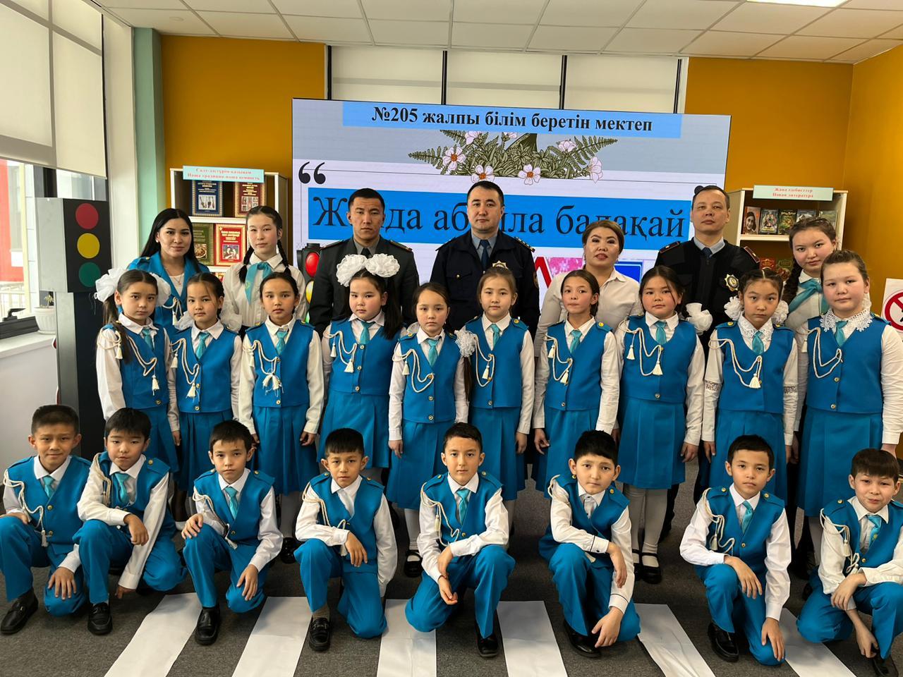 Қаңтар айының 26 жұлдызында мектептің 1-5 сынып оқушыларына арналған "Жолда абайла балақай!" атты жол қауіпсіздігіне байланысты жол полиция қызметкерлерімен кездесу шарасы ұйымдастырылды. Кездесуге Алатау ауданы әкімшілік полиция басқармасының мемлекеттік көлік инспекторлары С.Акмаханов пен Р. Оразымбетов оқушыларымызға жолда дұрыс жүру, бағдаршамға бағыну, жол белгілерін білу және қауіп қатердің алдын алу бойынша түсіндірме жұмыстарын жүргізді. Бұл кездесудің негізгі мақсаты: