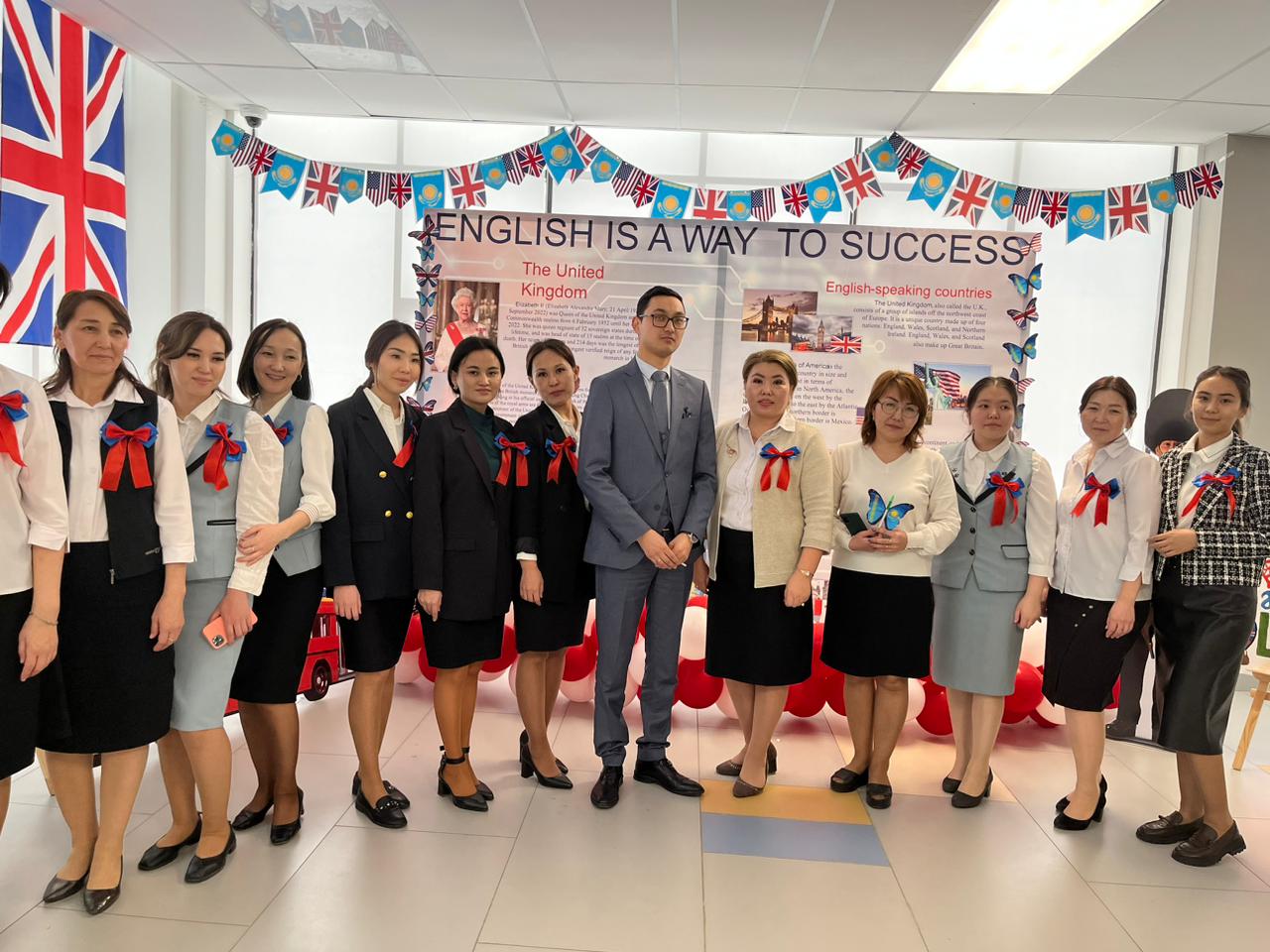 During the opening ceremony of the week, students got acquainted with the purpose and conditions of the week. The week was officially opened by elementary school students with the song "Ақ көгершін" in English. The first competition of the opening ceremony was held under the name "We speak English". In this competition, students answered questions, (Answer the question?), Confirmed sentences on the text Where are you from?, Where are you a minute? What subject do you like? Who is your class teacher? Who is your English teacher? How many letters are in English? Such questions were asked and the students answered the questions in a competition. The student who was the first to raise his hand for an answer became the winner and was awarded with pens. And the next competition was held in the form of a quiz competition. Since the questions were about the UK, it was easy for the students to answer them.