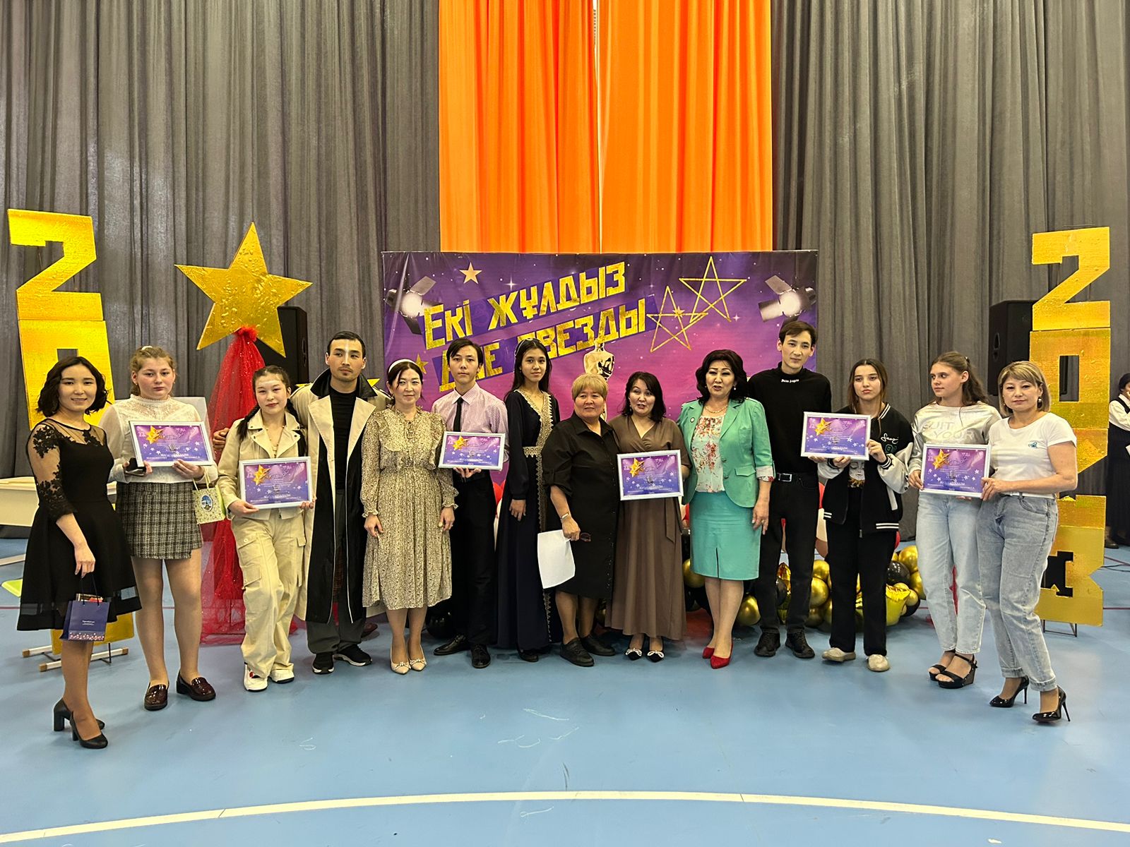 Қырандай қалықтап, әсем әнмен шарықтап, Қазақстанды аралап, өнерліні жағалап, алыстан ат арытып, микрофонды тоздырған «Екі жұлдыз» ән байқауы біздің мектебімізде ақпан айының 24-ші жұлдызында өте жоғарғы деңгейде өткізілді. Байқау шарты бойынша қатысушылар екі адамнан жұп құрады: бір ұстаз және бір оқушы. Ән байқауына қатысушылар саны 6 және олар 2 кезең бойынша сайысқа түсті. Байқауға қатысушыларымыздың өнерлері бір-бірінен асып, “сен тұр, мен атайын” дегендей өте тартысты өтті. Әділқазы алқаларының шешімі бойынша: БАС ЖҮЛДЕ - 9 А сынып оқушысы Мұхаметжан Алтын және д/ш пән мұғалімі Сембек Райымбек иеленді; I орын - 10 А сынып оқушысы Қанатбек Алмат және ағылшын тілі пән мұғалімі Джолдыбаева Ақмарал; ІІ орын - 8 Ғ сынып оқушысы Эмре Ямур және математика мұғалімі Исламғали Санжар; ІІІ орын - 6 Д сынып оқушысы Фёдорова Каролина және орыс тілі пән мұғалімі Актумабаева Алия МАРАПАТТАЛДЫ