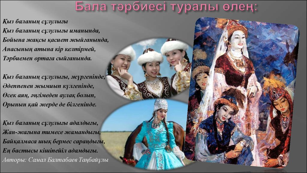 2) Қыз балаға тән этикалық қарым-қатынас пен мәдениеттілік;