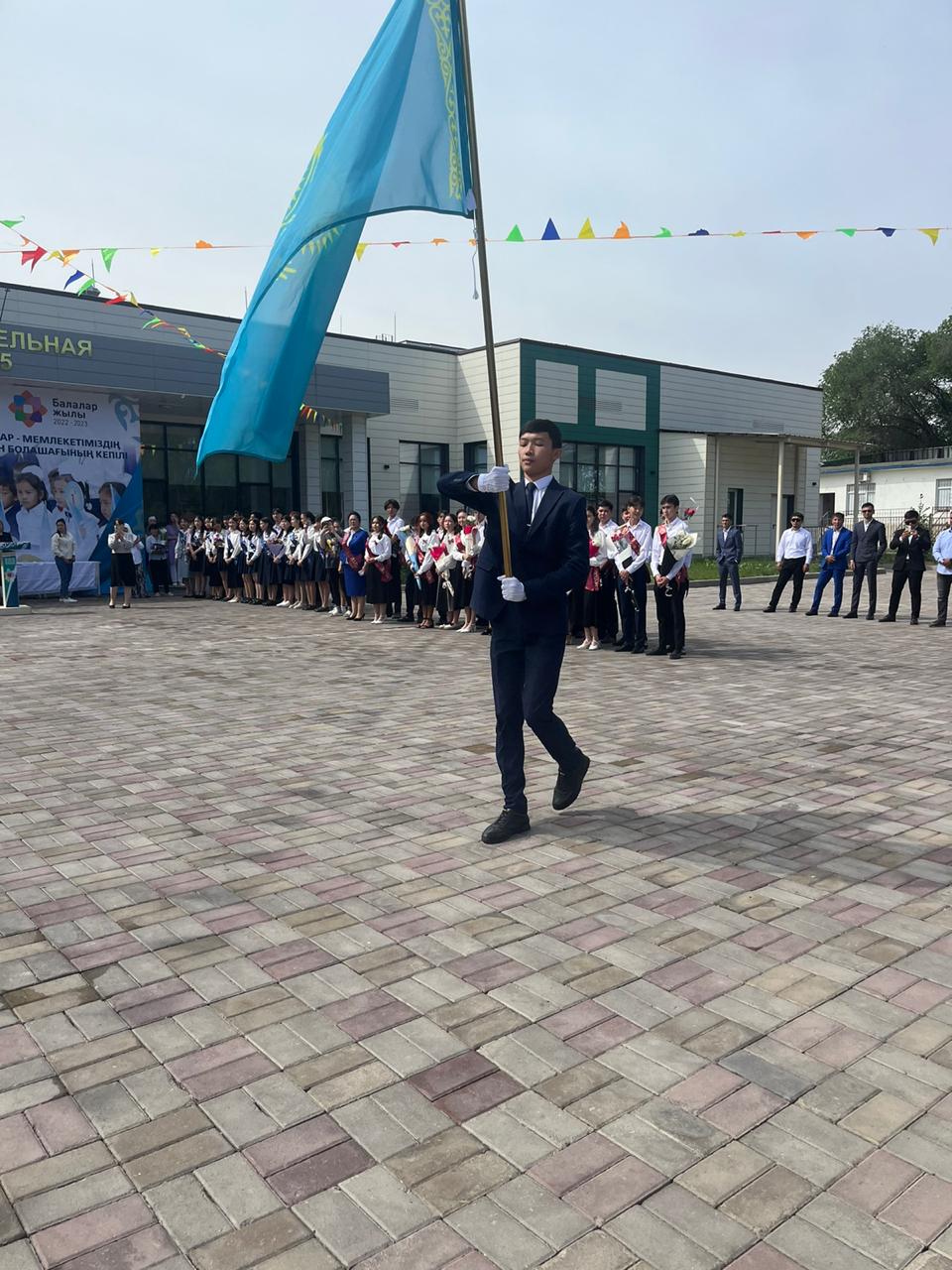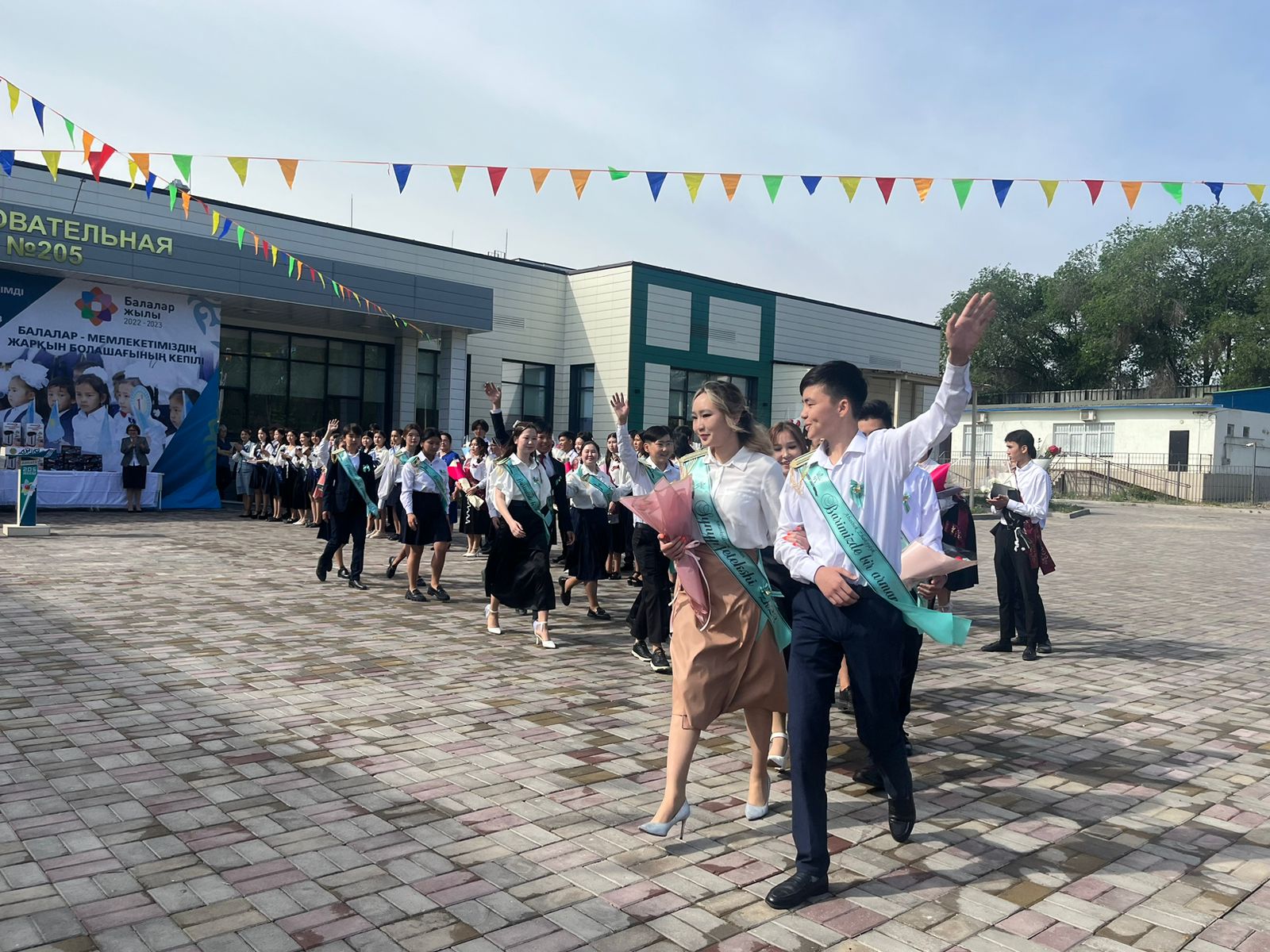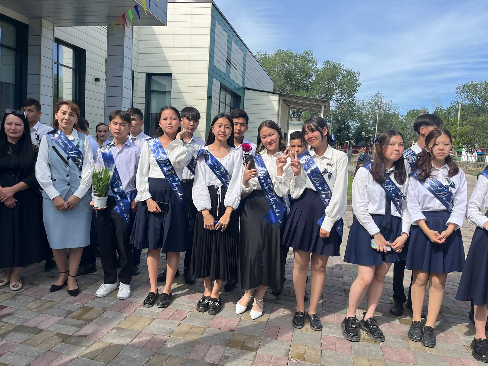 Оқу-ағарту министрлігінің бұйрығына сәйкес, биыл мектептердегі оқу мерзімі 31 мамырда аяқталды. Қазақстан Республикасы Оқу-ағарту министрлігінің 2023 жылғы 10 сәуірдегі №88 «2022-2023 оқу жылын аяқтау және орта білім беру ұйымдарында білім алушыларды қорытынды аттестаттаудан өткізу мерзімдерін бекіту туралы» бұйрығын негізге ала отырып 2022-2023 оқу жылының аяқталу мерекесі 1 -маусым Халықаралық балаларды қорғау күнімен тұспа тұс өткізілді. Мектептің 9 сынып түлектері үшін салтанатты жиын мектеп ауласында таңғы сағат 9:00 де өткізілді. 2022 жылдың қыркүйек айында жаңадан бой көтеріп, есігін айқара ашқан білім ошағы тарихында, алғашқы түлеп ұшқалы тұрған осы 9 -шы сынып негізгі мектеп бітіруші түлектер болды. Олар: 9а- сыныбы сынып жетекшісі ағылшын тілі пәні мұғалімі Жакипова Гүлназ Андиебергеновна, 9 Ә сыныбы сынып жетекшісі физика пәні ұстазы Молдакулова Жұпархан Тұрсыновна, 9б- сыныбы химия пәні мұғалімі, директордың тәрбие орынбасары Амангельдинова Жанат Бакиджановна және 9 В сыныбы география пәні мұғалімі Амангельдиева Тогжан Сунгатқызы. Аталған сыныптар мерекенің көркі болды.