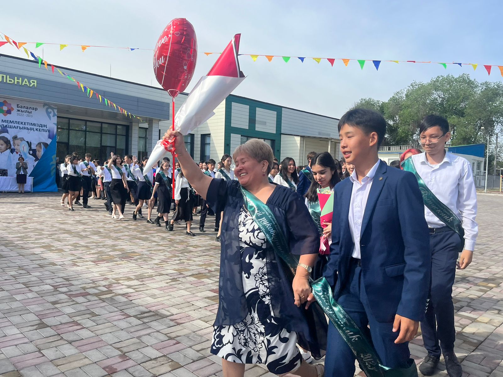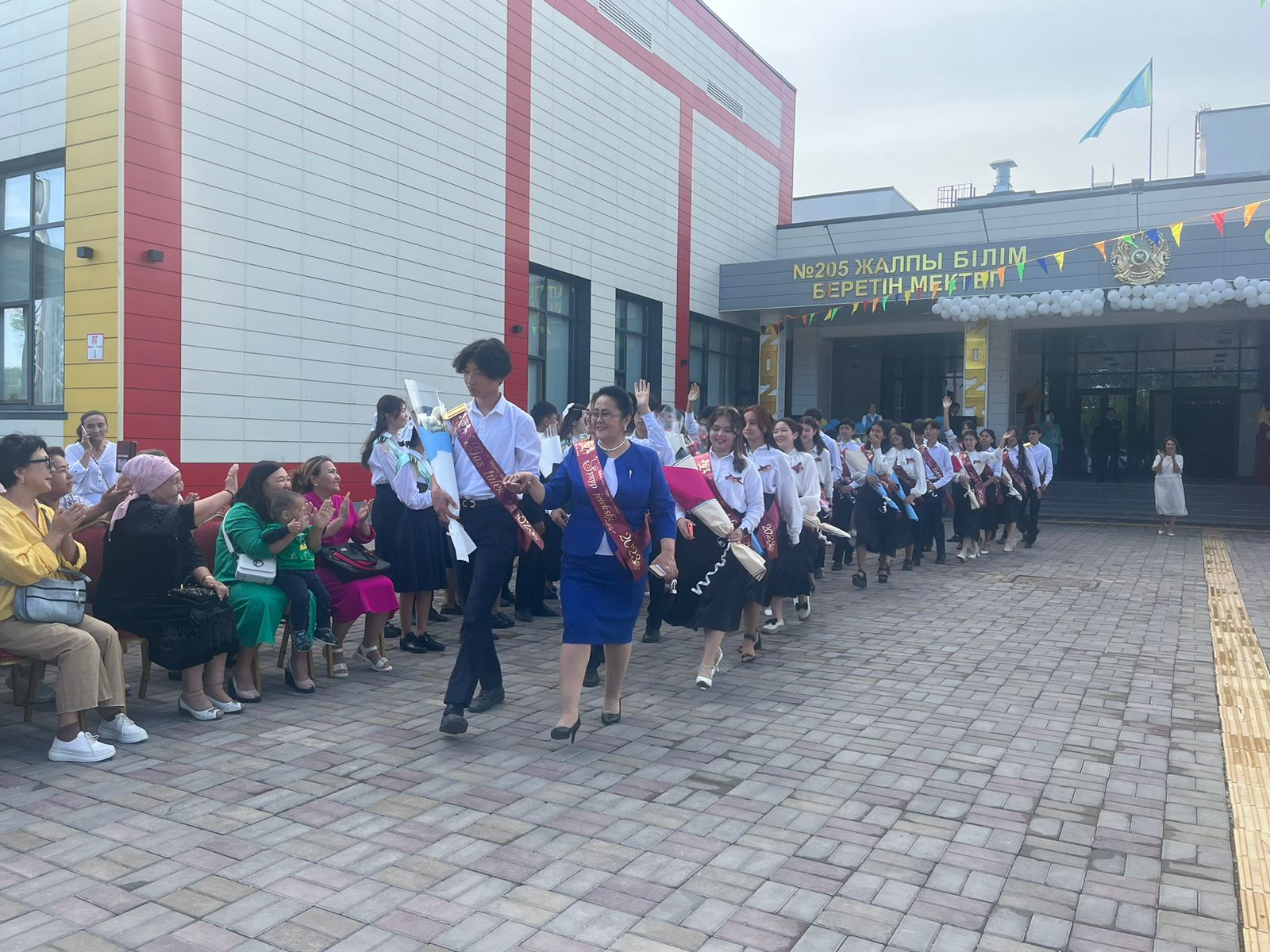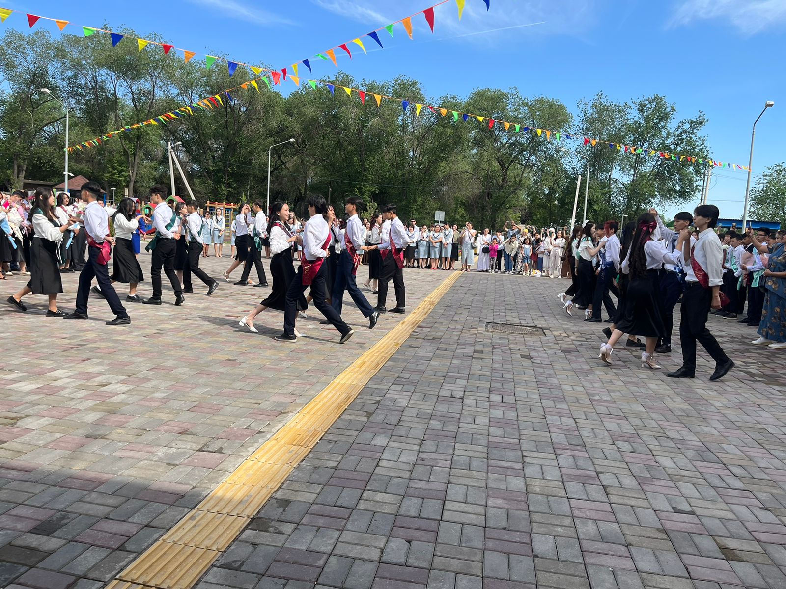 Оқу-ағарту министрлігінің бұйрығына сәйкес, биыл мектептердегі оқу мерзімі 31 мамырда аяқталды. Қазақстан Республикасы Оқу-ағарту министрлігінің 2023 жылғы 10 сәуірдегі №88 «2022-2023 оқу жылын аяқтау және орта білім беру ұйымдарында білім алушыларды қорытынды аттестаттаудан өткізу мерзімдерін бекіту туралы» бұйрығын негізге ала отырып 2022-2023 оқу жылының аяқталу мерекесі 1 -маусым Халықаралық балаларды қорғау күнімен тұспа тұс өткізілді. Мектептің 9 сынып түлектері үшін салтанатты жиын мектеп ауласында таңғы сағат 9:00 де өткізілді. 2022 жылдың қыркүйек айында жаңадан бой көтеріп, есігін айқара ашқан білім ошағы тарихында, алғашқы түлеп ұшқалы тұрған осы 9 -шы сынып негізгі мектеп бітіруші түлектер болды. Олар: 9а- сыныбы сынып жетекшісі ағылшын тілі пәні мұғалімі Жакипова Гүлназ Андиебергеновна, 9 Ә сыныбы сынып жетекшісі физика пәні ұстазы Молдакулова Жұпархан Тұрсыновна, 9б- сыныбы химия пәні мұғалімі, директордың тәрбие орынбасары Амангельдинова Жанат Бакиджановна және 9 В сыныбы география пәні мұғалімі Амангельдиева Тогжан Сунгатқызы. Аталған сыныптар мерекенің көркі болды.