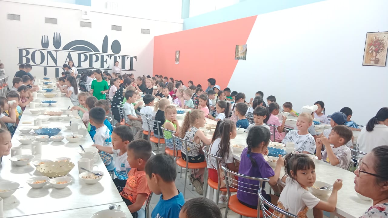Лагерьге келген балаларға бір мезгіл ыстық ұйымдастырылған. Балалармен жұмыс жасайтын мектеп психологы Улданай Турақызы, мектеп медбикесі Т. Таубазарова музыка пәні мұғалімі Б. Сабраев, аға тәлімгерлер Жанат Назерке мен Қожанова Жанар дене шынықтыру мұғалімдері балалардың әр күндерін қызықты өтуіне түрлі ойындар ойнатып, тапсырмалар беріп, ән салдырып, би билетіп көңілдерін көтеруде. Шаттыққа толы болған күн, әрбір баланың қуанышты көңіл-күйде жүруіне септігін тигізді. Балалардың бақыты - ізгі қоғам қалыптастырудағы негізгі қадамдардың бірі болып табылады.
