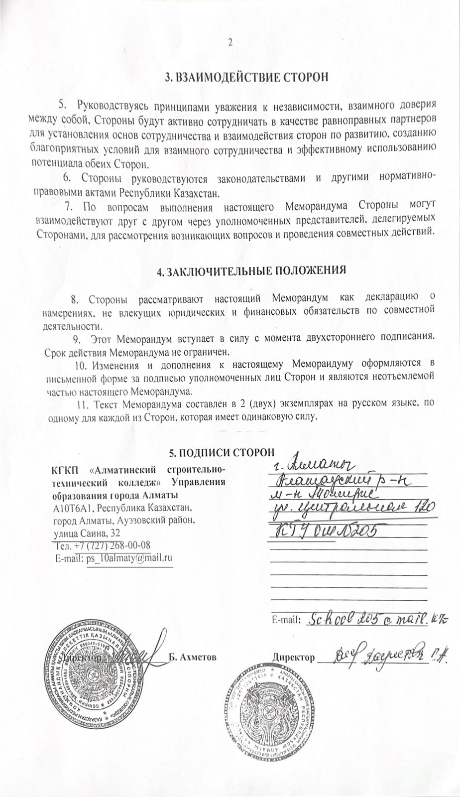 МЕМОРАНДУМ- Алматинский строительно-технический колледж"