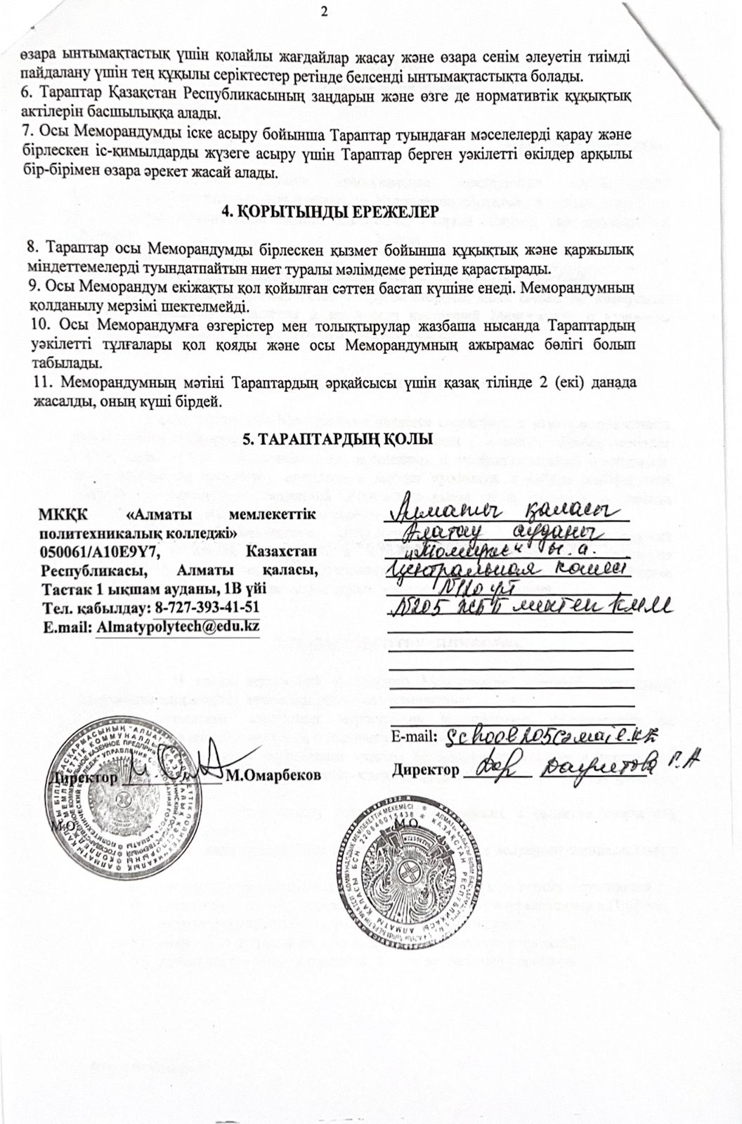 МЕМОРАНДУМ- Алматы мемлекеттік политехникалық колледж