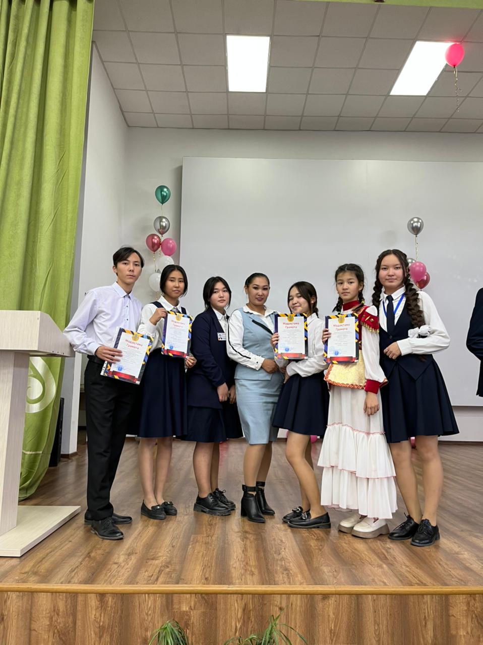 Атап айтсақ, 9”Ә”сынып оқушысы Алдаберген Нұрай , Ақындар мүшайрасы кезеңінен БАС ЖҮЛДЕНІ еншіледі. Ұлттық аспапта өнер көрсету кезеңі бойынша 10 “А” сынып оқушысы Қанатбек Алмат ІІ- жүлделі орыннан көрінді. ЭССЕ жазу кезеңі бойынша , 8”Ә”сынып оқушысы Қияшидин Аянат ІІІ- орыннан және 7”Ә”сынап оқушысы Маратова Амина Ақындар айтысы кезеңі бойынша ІІІ- орындарды еншілеп келді. Мектебіміздің абыройын асқақтатып ақ туын желбіретер оқушыларымыздан әлі талай жеңістерті қолдан бермесіне кәміл сенімдіміз.