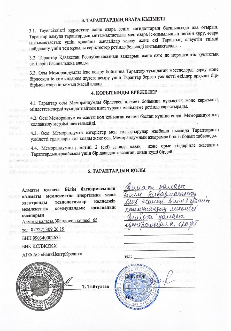 28 қараша 2023 0 1 2 3 4 5 МЕМОРАНДУМ МЕМОРАНДУМ- "Алматы мемлекеттік энергетика және электронды технологиялар колледж"