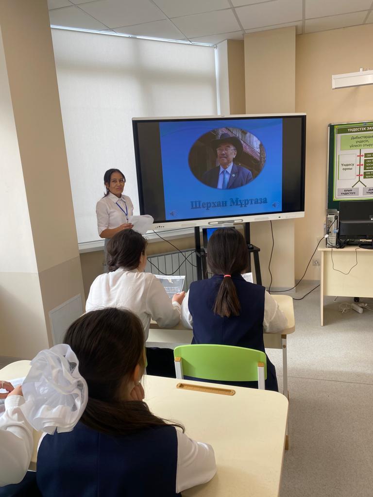 Шерхан Мұртазаның- 90 жыл атты кітап көрмесі ұйымдастырылды. Оқушылар ақынның көптеген кітаптарымен танысты. Іс-шарада интерактивтік тақта,слайд қолданылды.