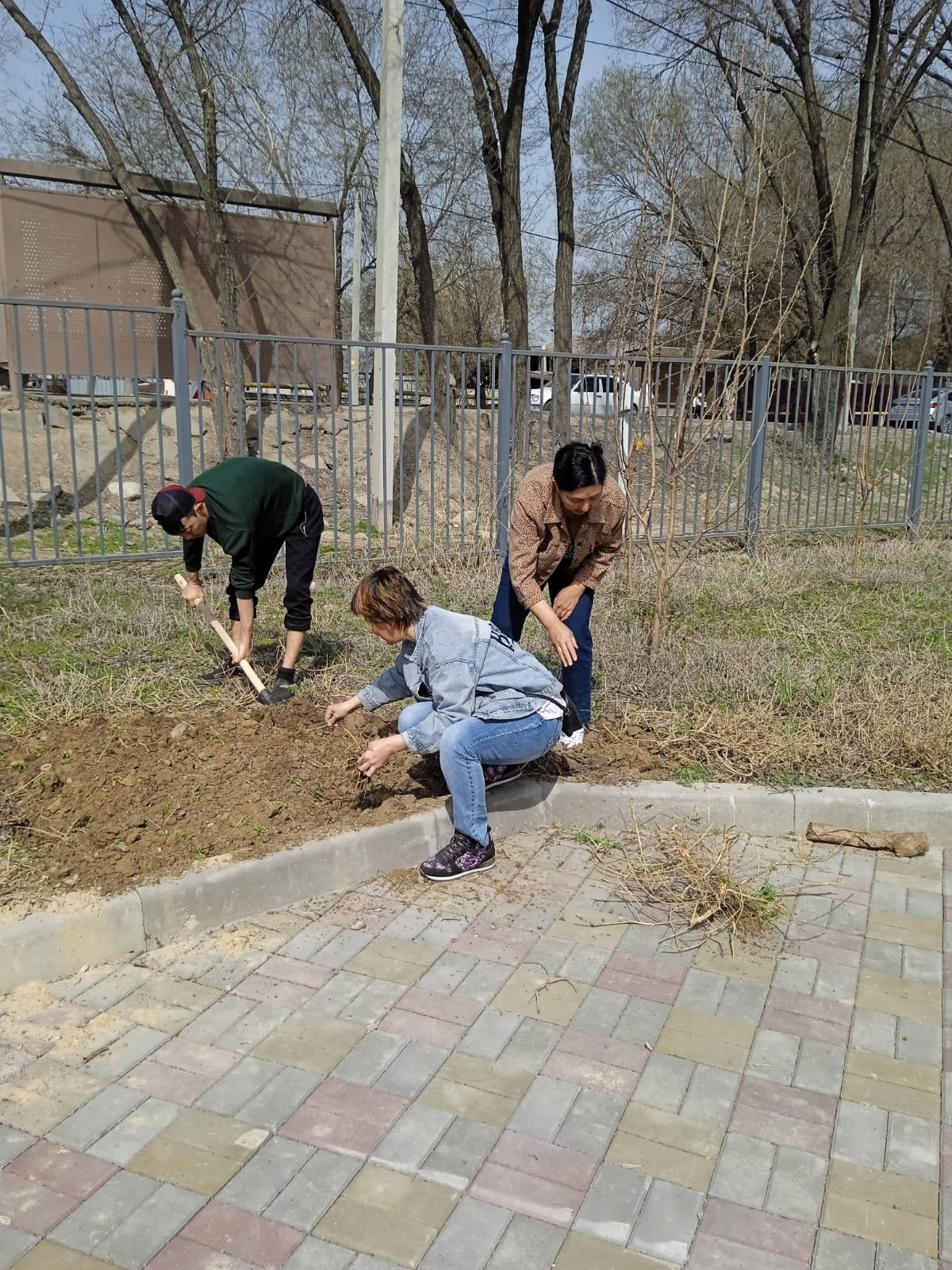 "Гүл өссе,жердің көркі"- дегендей, алдағы уақытта әдемі раушандар аллеясы жайқалатын болады. 0"А"сыныбының кішкентай бүлдіршіндеріне экологиялық тәрбие беру мақсатында ата-аналар бізбен бірлесіп,қол-қол қабыс жасап көмектесті. Жерді қопсытып көшеттер отырғыздық .Алдағы жаңа оқу жылында балаларымызды гүл жайнаған алаңда қарсы аламызпыз.