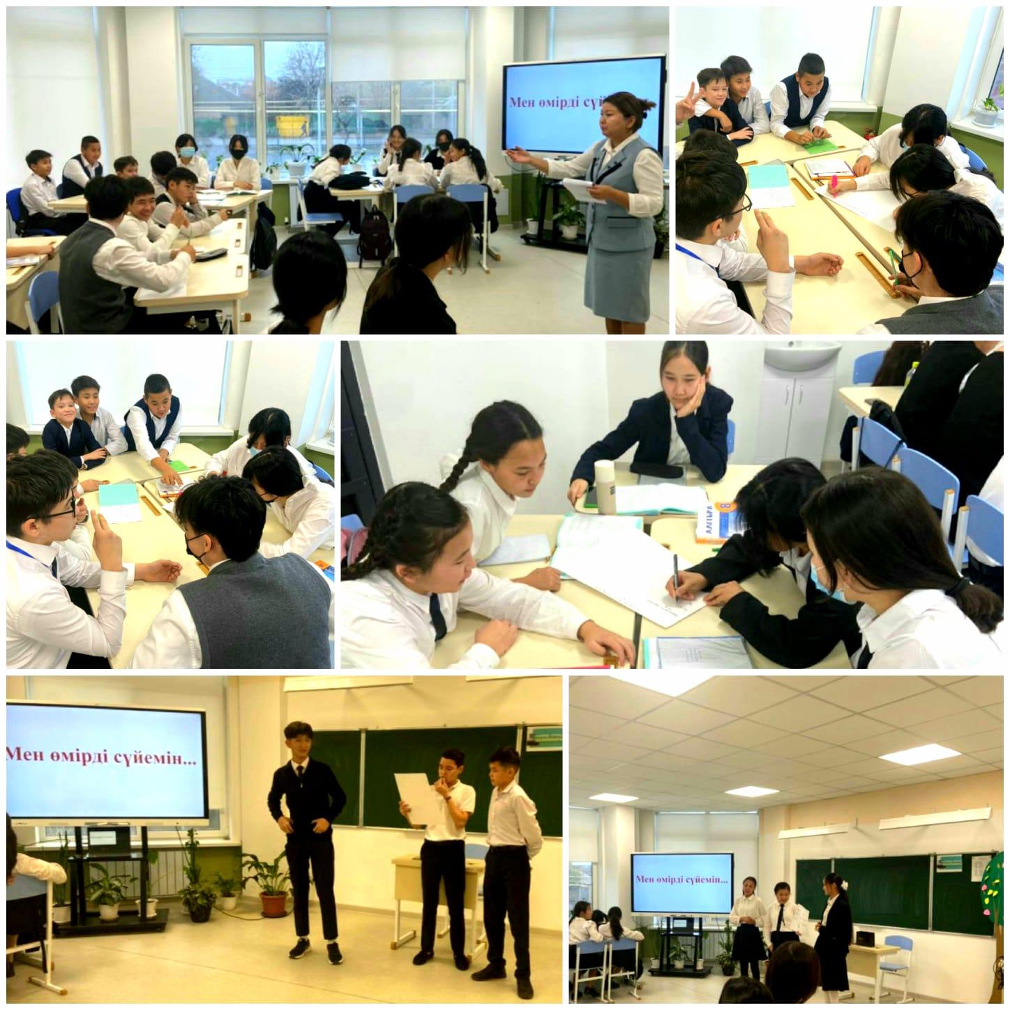 Білім алушылар топқа бөлініп, өздеріне берілген сұрақтарға бірлесе отырып жауап іздеп, постер қорғады. Әр топ өзінің өмірге деген қөзқарастарын білдіріп, ойларын ортаға салып бөлісті.