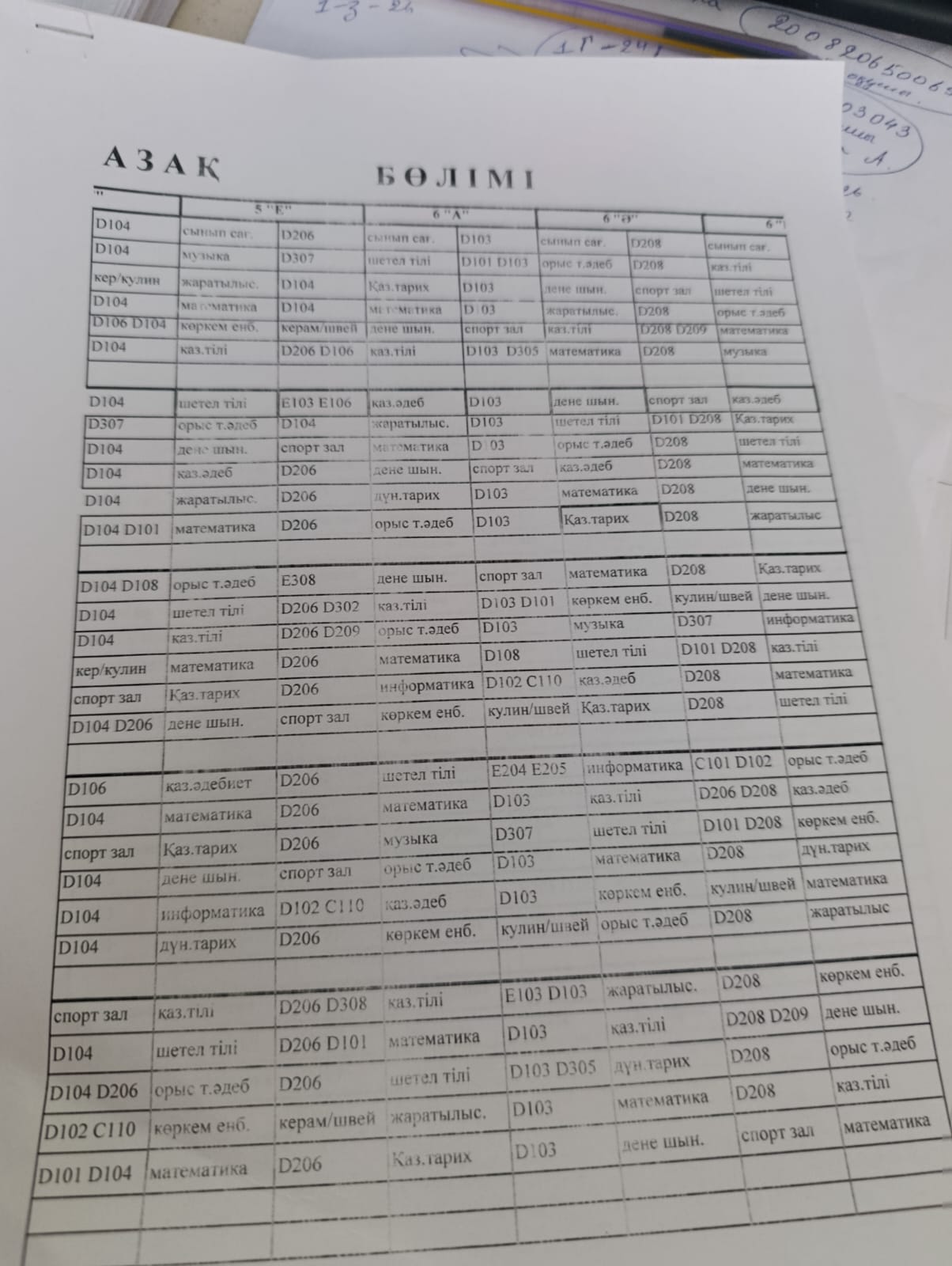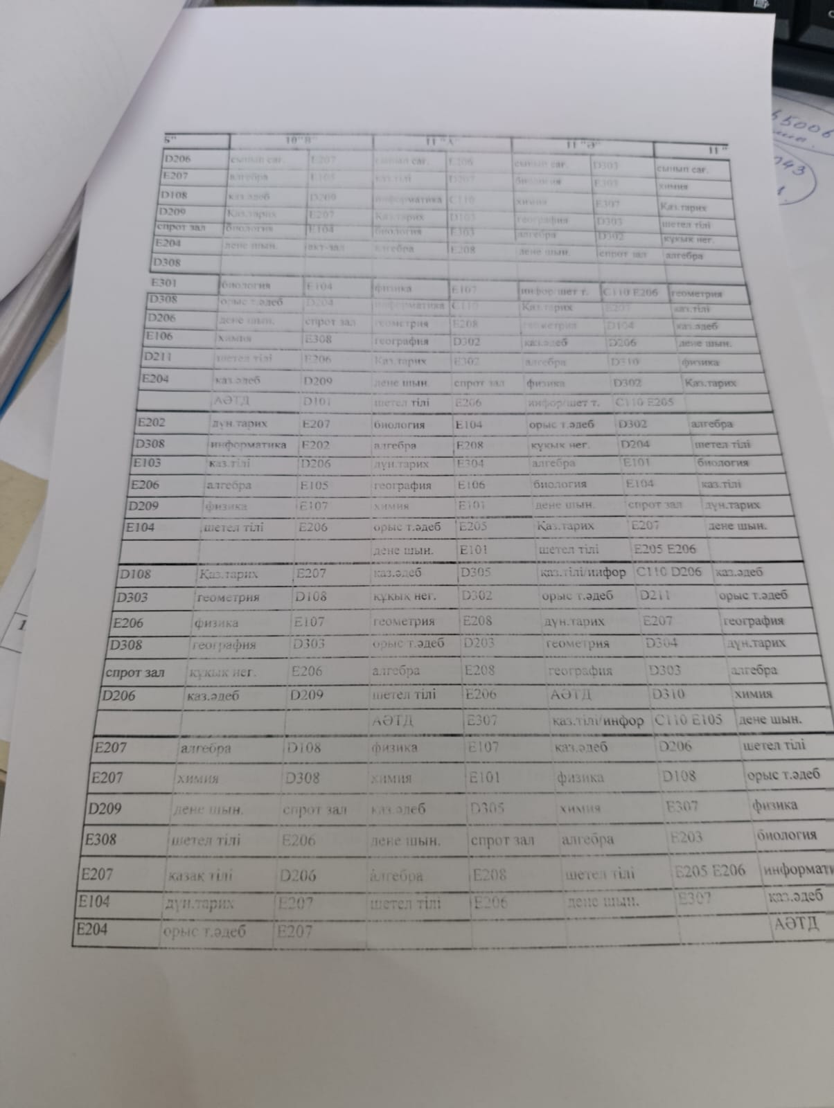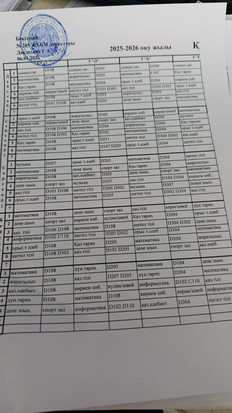 » » №205 ЖББ мектебінің 2025-2026 оқу жылының сабақ кестнесі/Расписание 2-жартыжылдық/полугодие