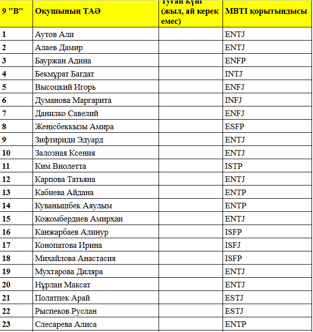 MBTI тесті арқылы оқушылардың психологиялық қабілетін анықтау