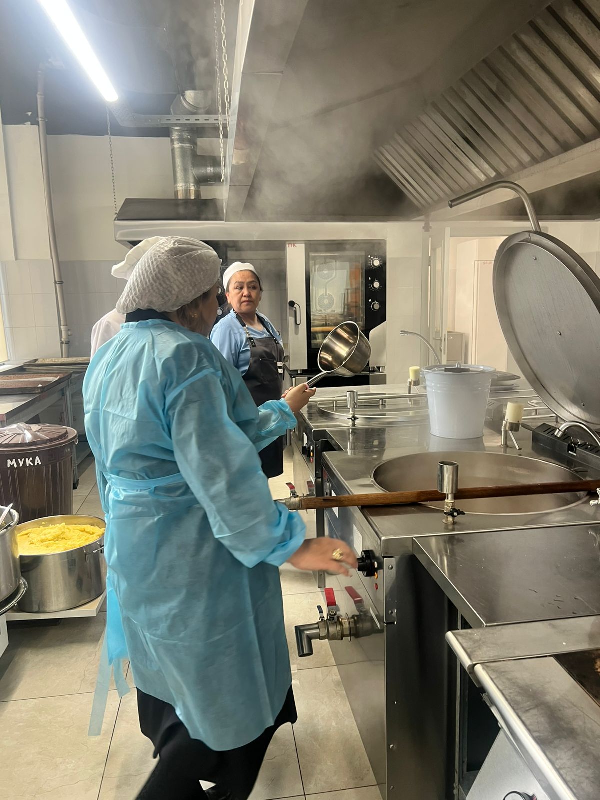 Жалпы асхананың санитарлық жағдайы, аспаздардың сыртқы киім үлгісі, барлық санитарлық талапқа сай.