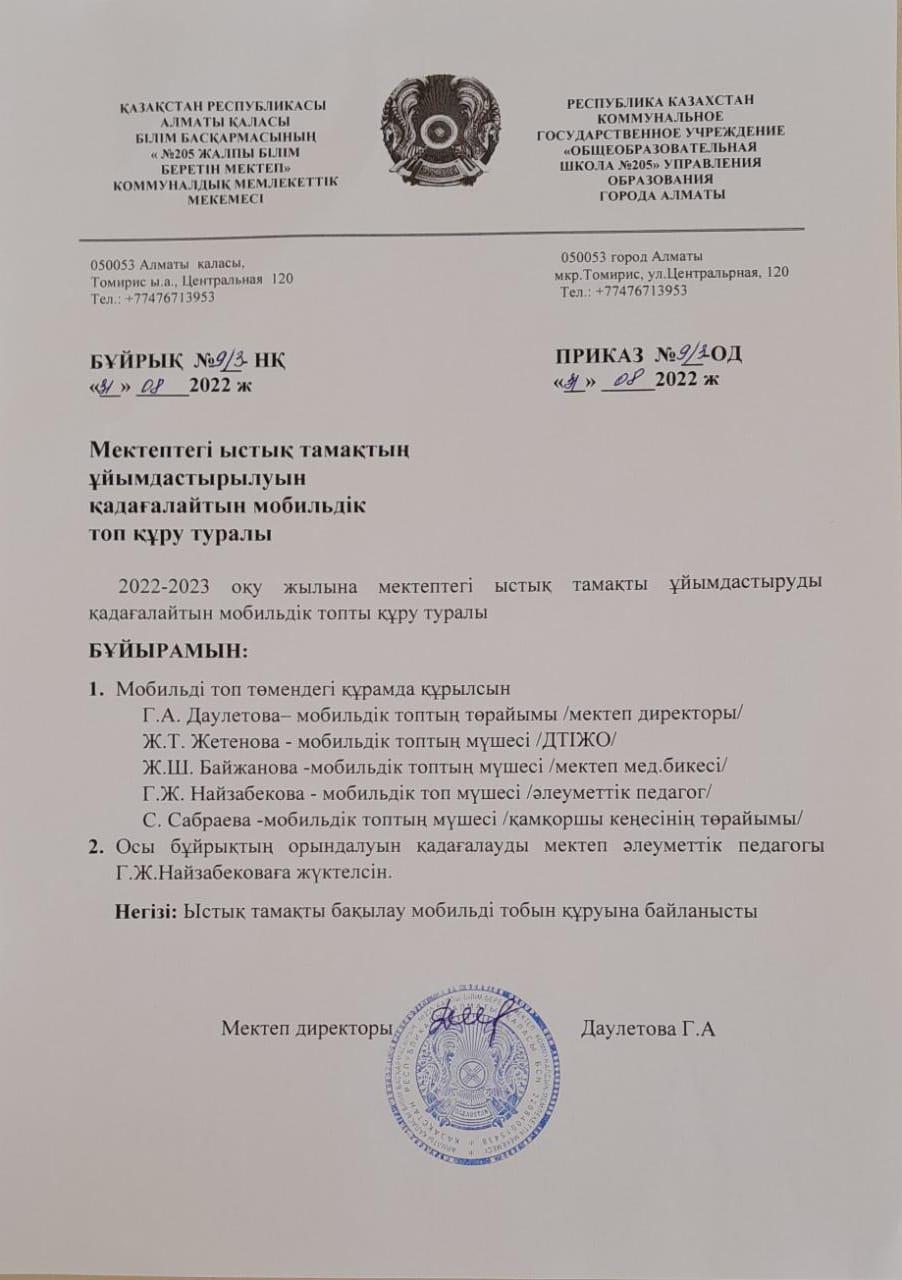 » » Бұйрық. Ыстық тамақты ұйымдастыру