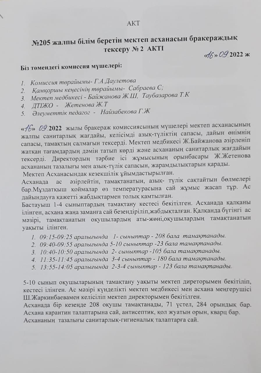 » » Мектеп асханасын бракераждық тексеру № 2 Акт