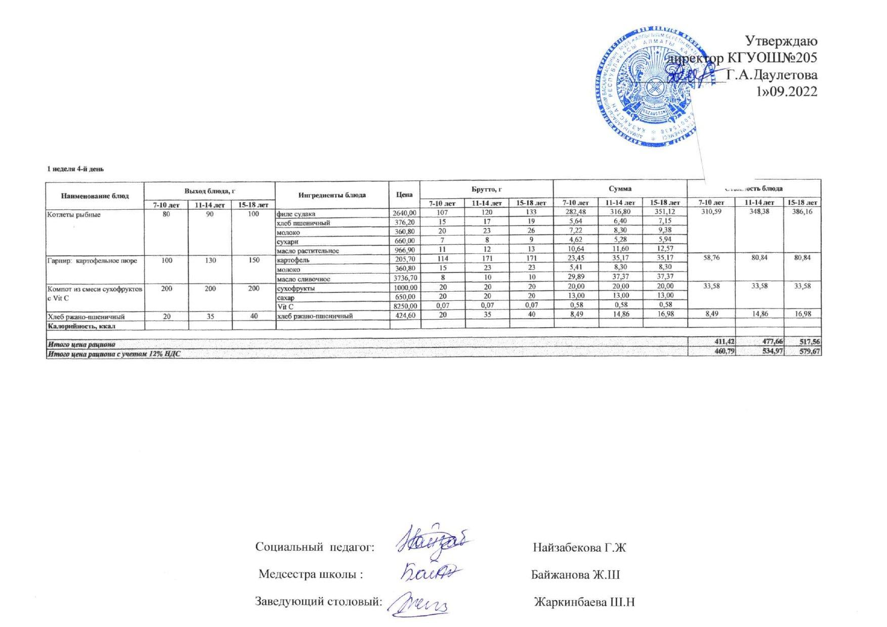02 қыркүйек 2022 Ас мәзірі. Меню